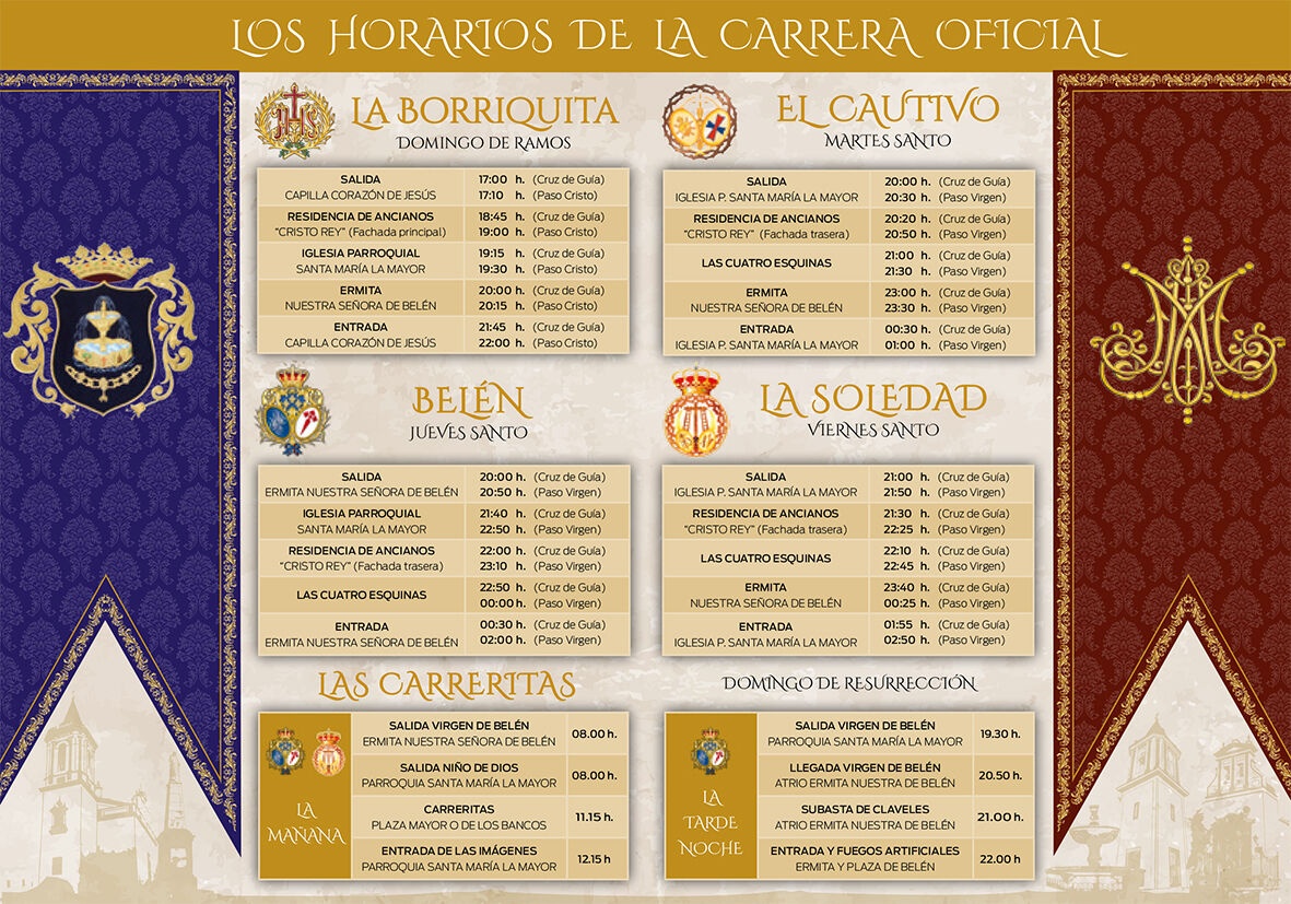 Consulta los horarios aproximados de salidas y entradas de las cofradías de nuestra localidad.
