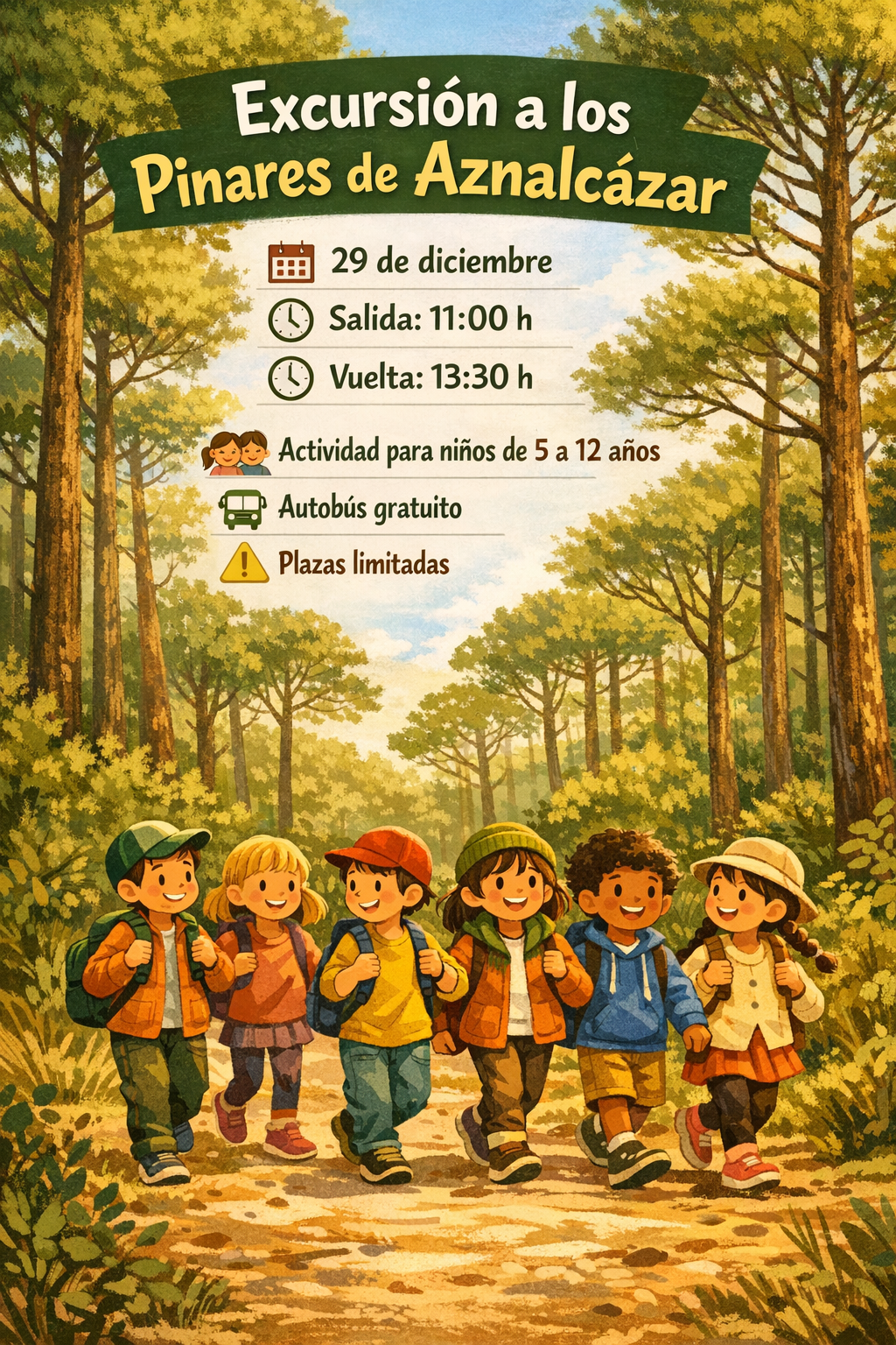 Dentro de la programación navideña, desde el Ayuntamiento de Pilas organizamos una excursión a los Pinares de Aznalcázar el próximo lunes, 29 de diciembre, para niños y niñas de entre 5 y 12 años.