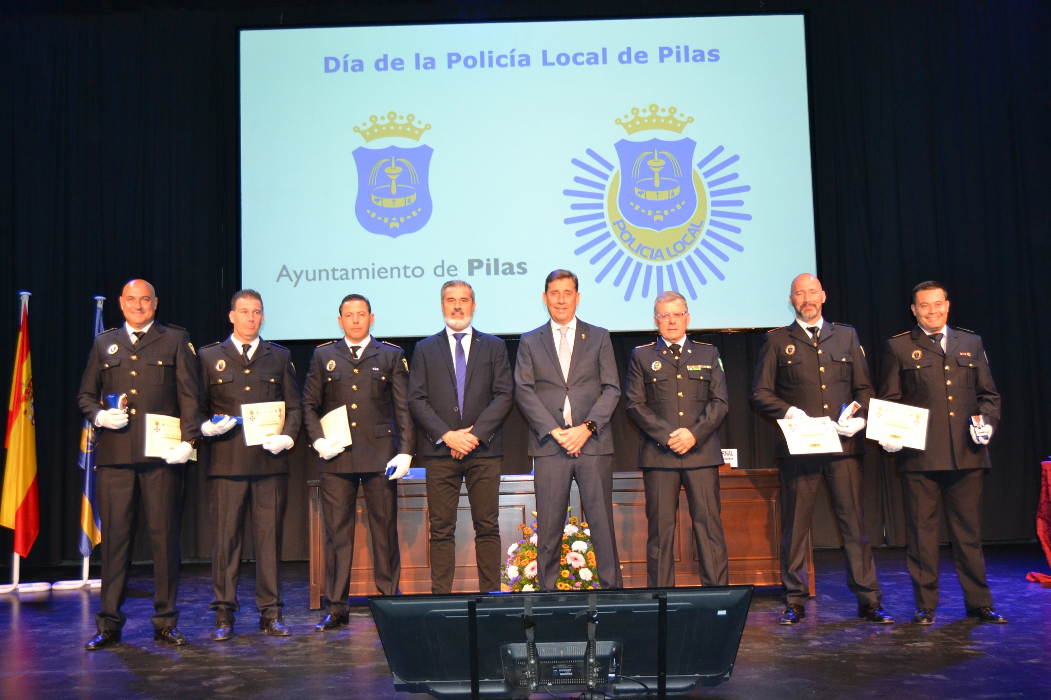 La gala, conducida por Mª Paz Valladares, fue presidida por el alcalde, José Leocadio Ortega, por el concejal de Seguridad Ciudadana, Enrique Bernal, y por el subinspector de la Policía Local de Pilas, Francisco Antonio del Valle, que fueron entregando sucesivamente las distintas distinciones a los allí presentes.