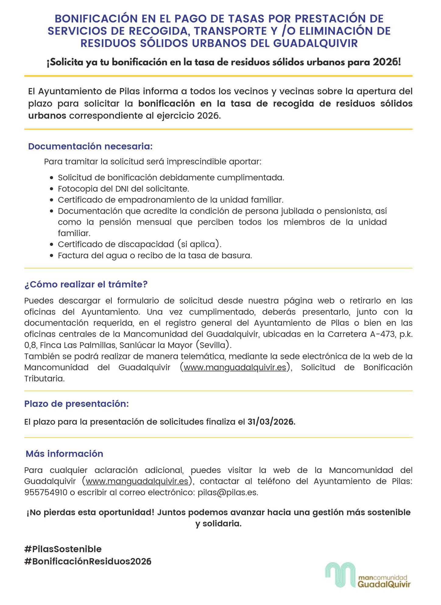 Solicita ya tu bonificación en la tasa de residuos sólidos urbanos para 2026