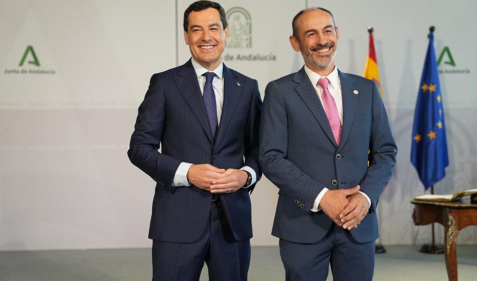 El Palacio de San Telmo acogió en la jornada de ayer la toma de posesión de José Rodríguez Quintero como nuevo rector de la Universidad de Huelva, en un acto encabezado por el presidente de la Junta de Andalucía, Juanma Moreno, y en el que estuvo presente nuestro alcalde, José Leocadio Ortega.
