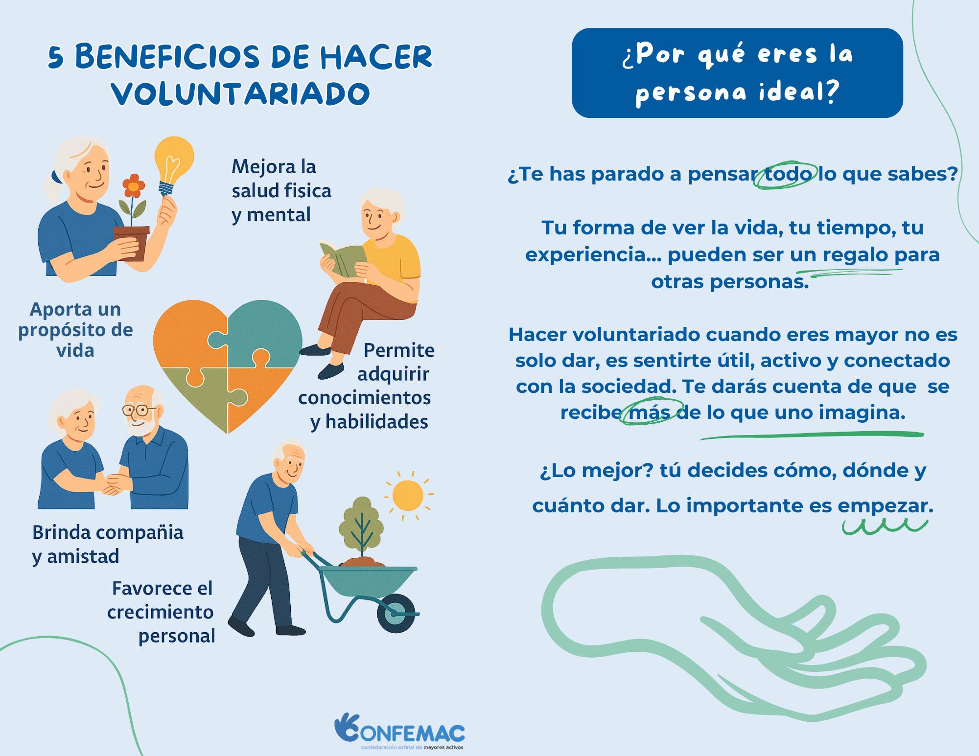 CONFEMAC lanza la campaña “Cuando dar se convierte en recibir”, para promover los beneficios del voluntariado en las personas mayores