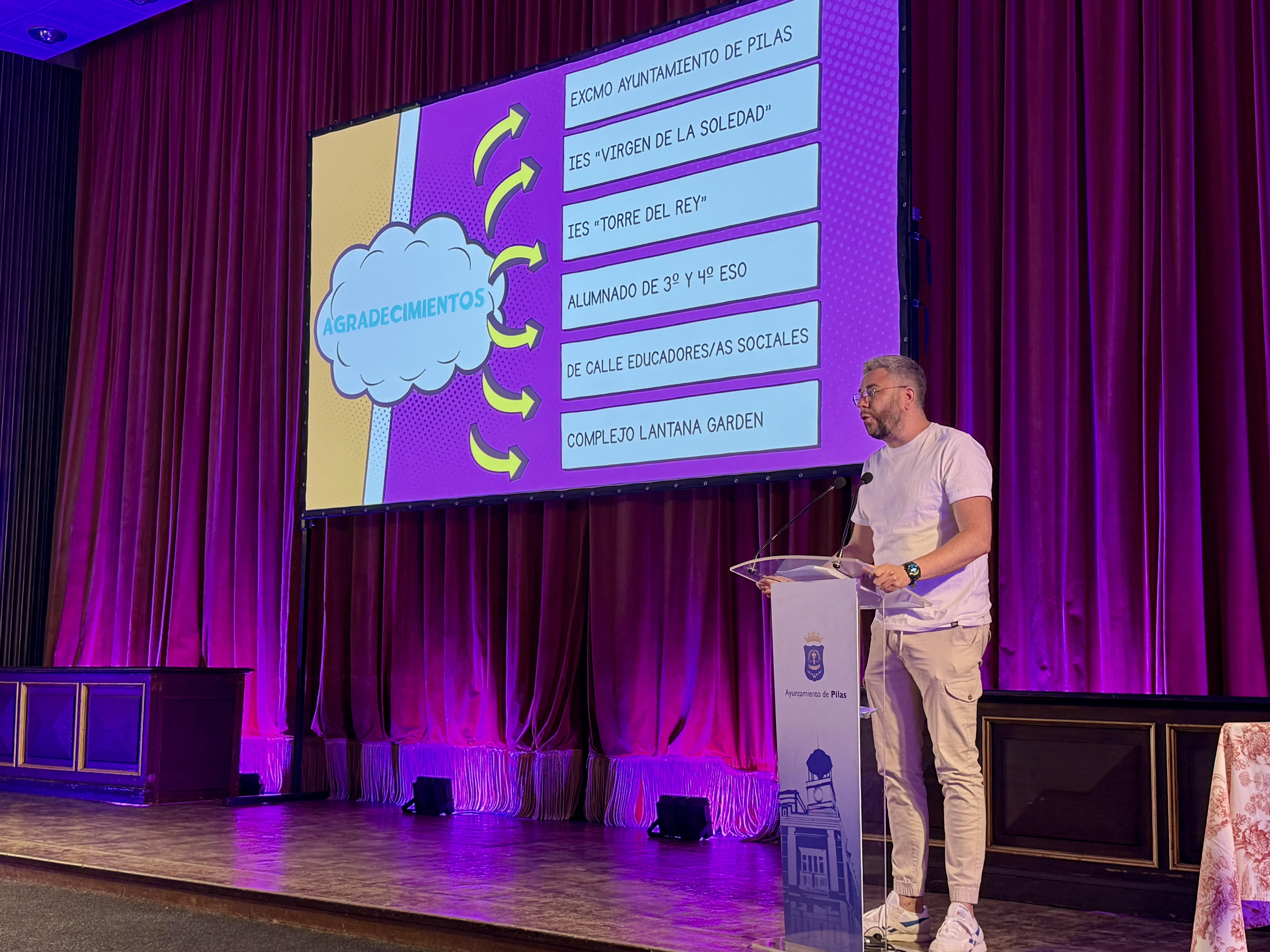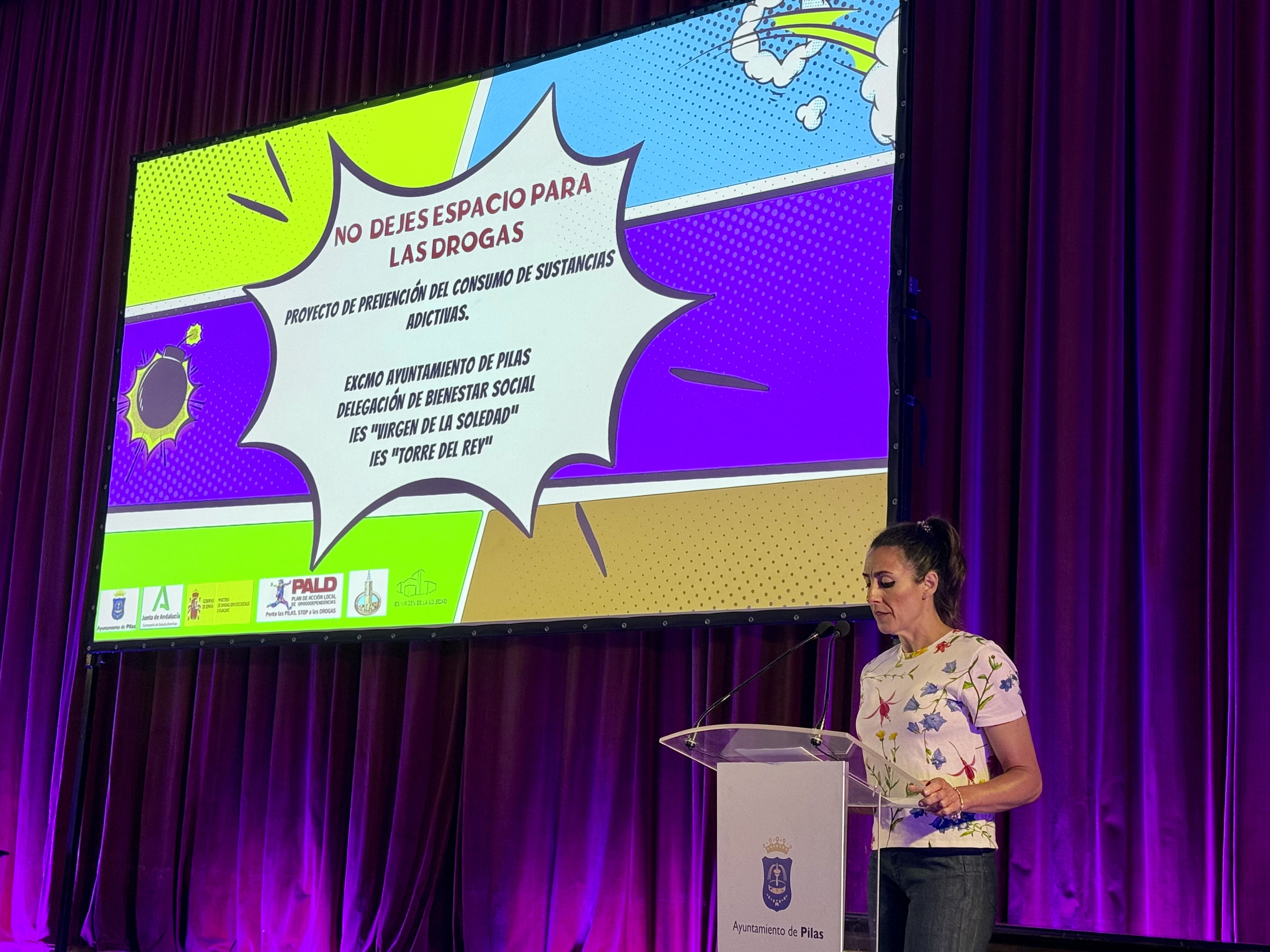En la mañana de este jueves, se ha celebrado el acto de clausura del proyecto 'No dejes espacio para las drogas', en el marco del programa de prevención comunitaria 'Ciudades ante las Drogas', llevado a cabo por quinto año por el Departamento de Servicios Sociales Comunitarios del Ayuntamiento de Pilas, y que ha protagonizado una vez más el alumnado de 3º y 4º de ESO del municipio.