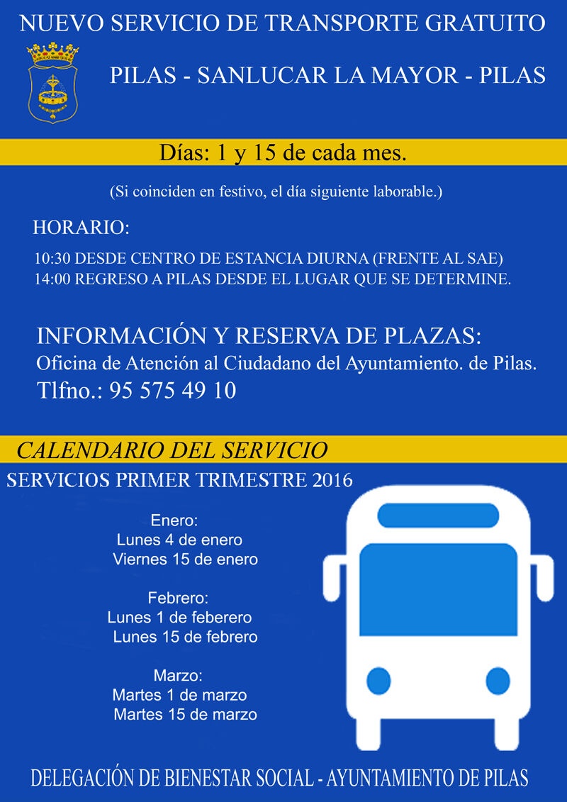 Fechas del servicio de transporte gratuito a Sanlúcar para el primer trimestre de 2016