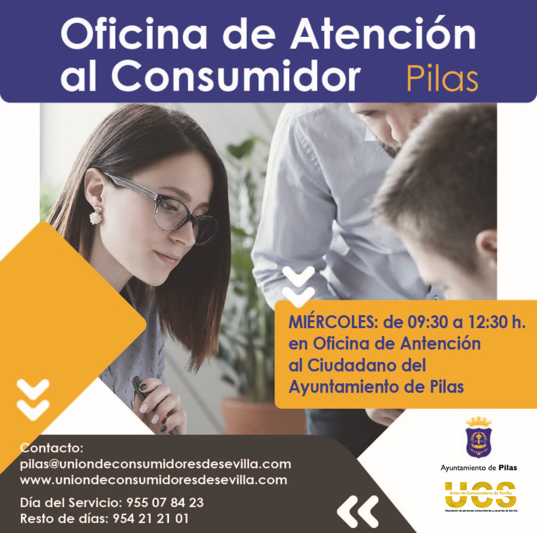 MIÉRCOLES de 09.30 a 12.30 horas en Oficina de Atención al Ciudadano del Ayuntamiento de Pilas.