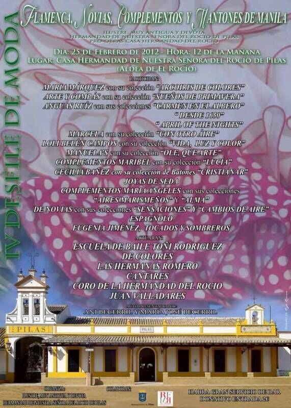 Día: 25 de febrero de 2012. Hora: 12 de la mañana. Lugar: Casa Hermandad de Nuestra Señora del Rocío de Pilas (Aldea de El Rocío). Autobús disponible: Salida desde el Alambique a las 11 de la mañana y vuelta a las 9 de la noche.