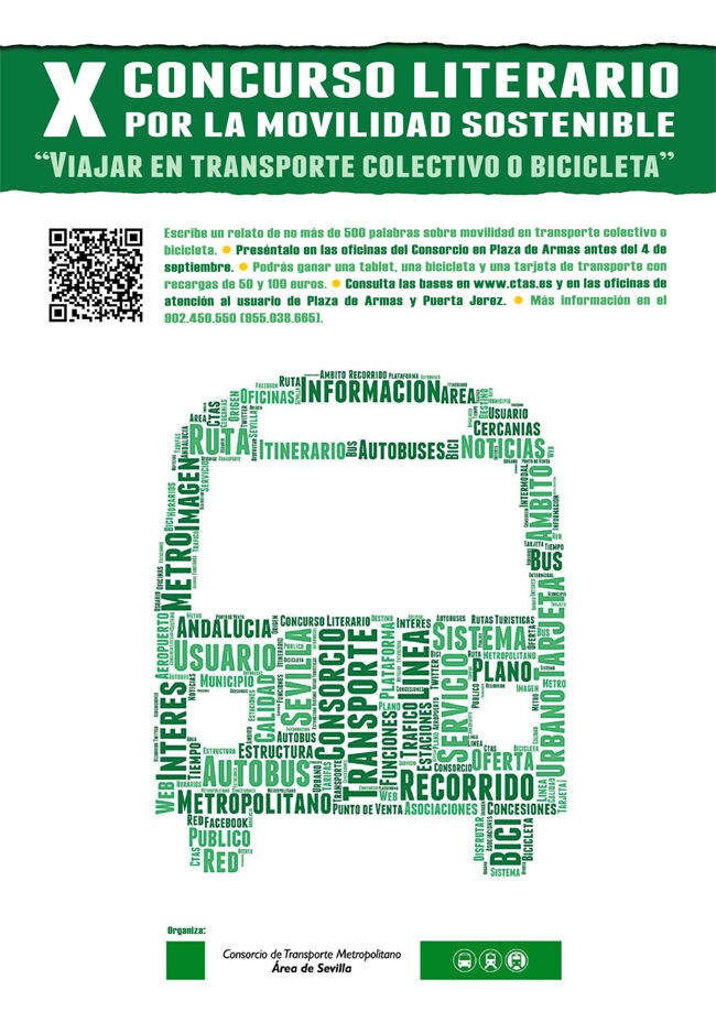 "Viajar en transporte colectivo o bicicleta en 500 palabras". El Consorcio de Transporte Metropolitano del Área de Sevilla ha publicado recientemente las bases de esta nueva edición de su concurso literario. Puedes consultarlas aquí.