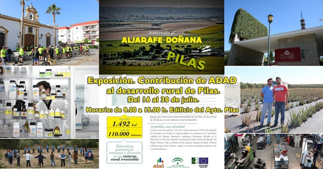 El Grupo de Desarrollo Rural Aljarafe-Doñana (ADAD) inicia el jueves 16 de julio -a las 12.30 horas está prevista su inauguración- una nueva acción promocional de su Plan de Dinamización Turística, que consiste en una exposición en el edificio del Ayuntamiento, que hasta el 30 de julio dará a conocer entre la ciudadanía las contribuciones al desarrollo rural que viene realizando desde hace más de quince años la entidad comarcal, especialmente en materia turística.