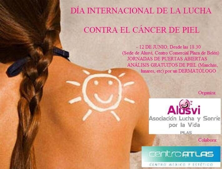 La asociación ALUSVI va a celebrar una Jornada de Puertas Abiertas en su sede (Alusvi-C.C. Plaza de Belén, local 4 bajo- Pilas) el próximo día 12 de Junio a partir de las 18.30h, con motivo del Día Internacional de la lucha contra el Cáncer de Piel que se conmemora el 13 de junio.