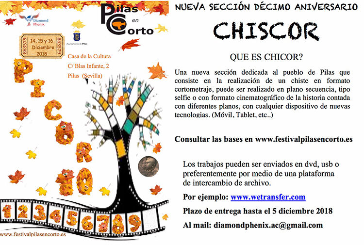 Este nuevo concurso consiste en la realización de un chiste en formato cortometraje, que puede ser realizado en plano secuencia, tipo selfie o con formato cinematográfico de la historia contada con diferentes planos. A continuación, pueden consultarse las bases, publicadas en la página oficial del Certamen Internacional de Cortometrajes 'Pilas en Corto', que se celebrará en nuestra localidad los próximos 14, 15 y 16 de diciembre.