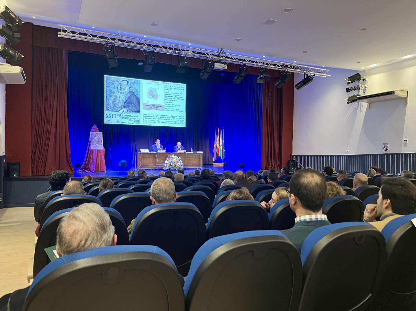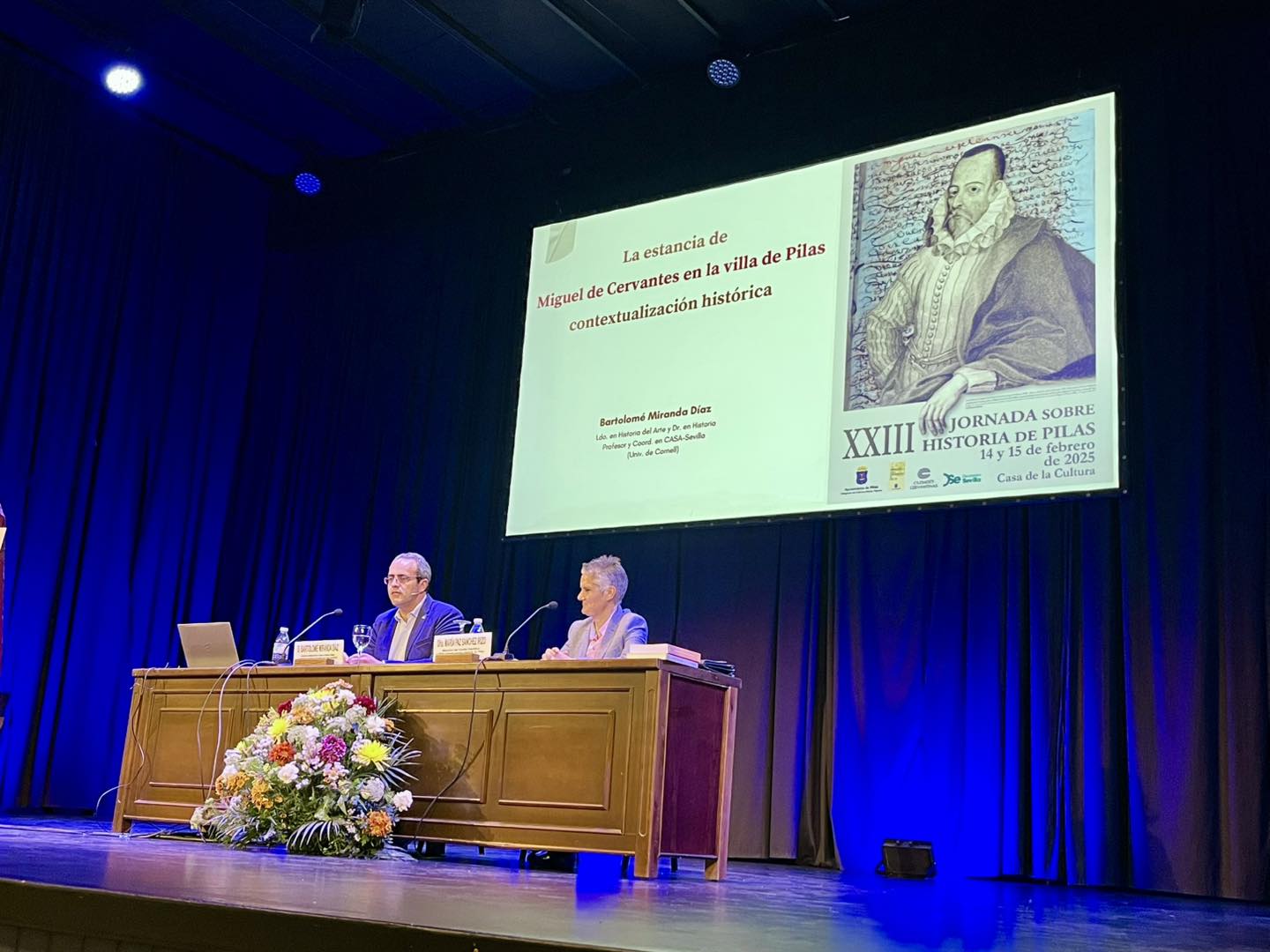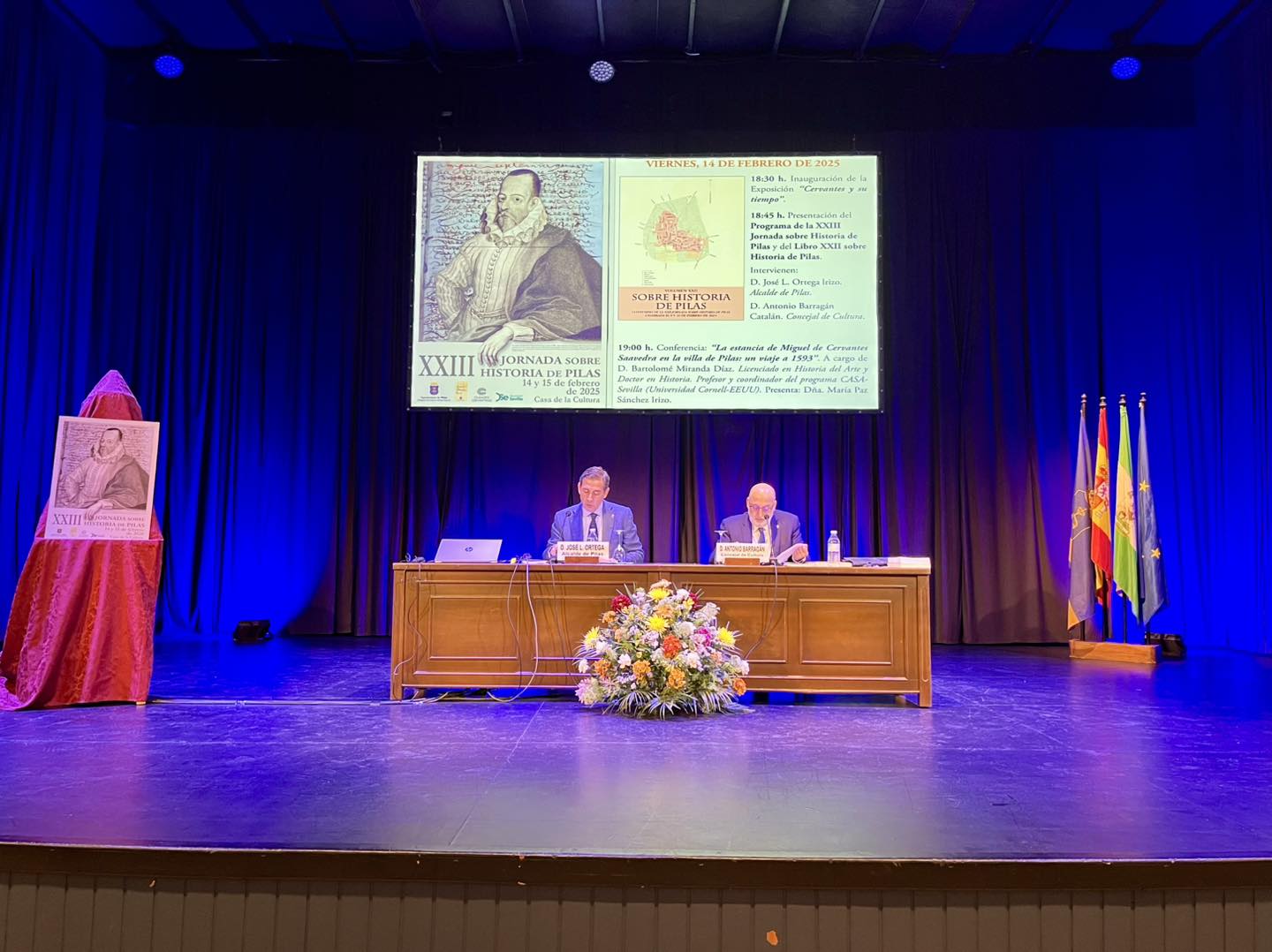 En esta tarde del pasado viernes, quedó inaugurada la XXIII Jornada sobre Historia de Pilas, con la magistral conferencia del historiador Bartolomé Miranda 'La estancia de Miguel de Cervantes Saavedra en la villa de Pilas: un viaje a 1593', y de la exposición 'Cervantes y su tiempo', una muestra de archivos digitales y documentos cedidos por la Junta de Castilla y León, que permanecerá abierta al público hasta el próximo 23 de febrero.