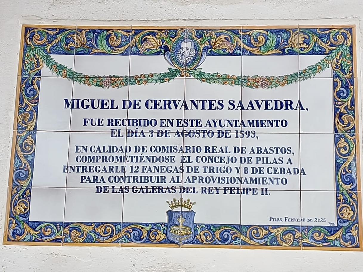 Y como colofón a la jornada, nuestro alcalde descubrió en la fachada Casa Consistorial un azulejo dedicado a Cervantes y su visita a Pilas el 3 de agosto de 1593 como comisario real de abastos.
