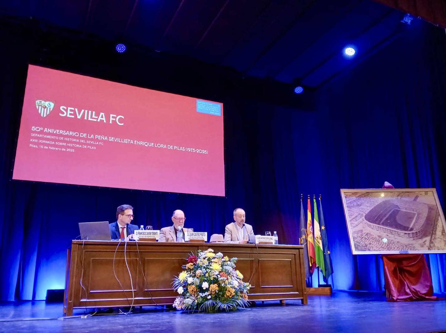 Ya en la mañana del martes, se sucedieron las otras tres ponencias que han compuesto esta cita con nuestro pasado: 'La trayectoria del pileño Francisco Mateos en México (1730-1750): de catedrático de filosofía y teología a rector del Seminario', por parte del licenciado en Periodismo, Francisco Javier Rodríguez Maraver; 'Pilas durante la invasión francesa (1810-1812)', de Manuel del Valle, doctor en Historia y profesor de secundaria; y '50ª Aniversario de la inauguración de la Peña Sevillista Enrique Lora de Pilas (1975-2025)', a cargo del área de Historia del Sevilla Fútbol Club.