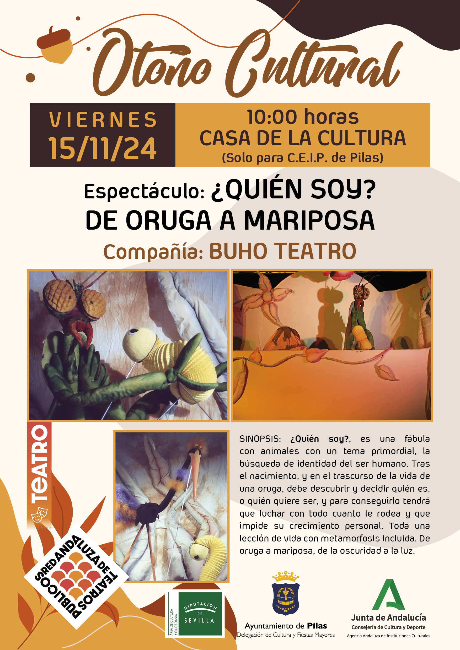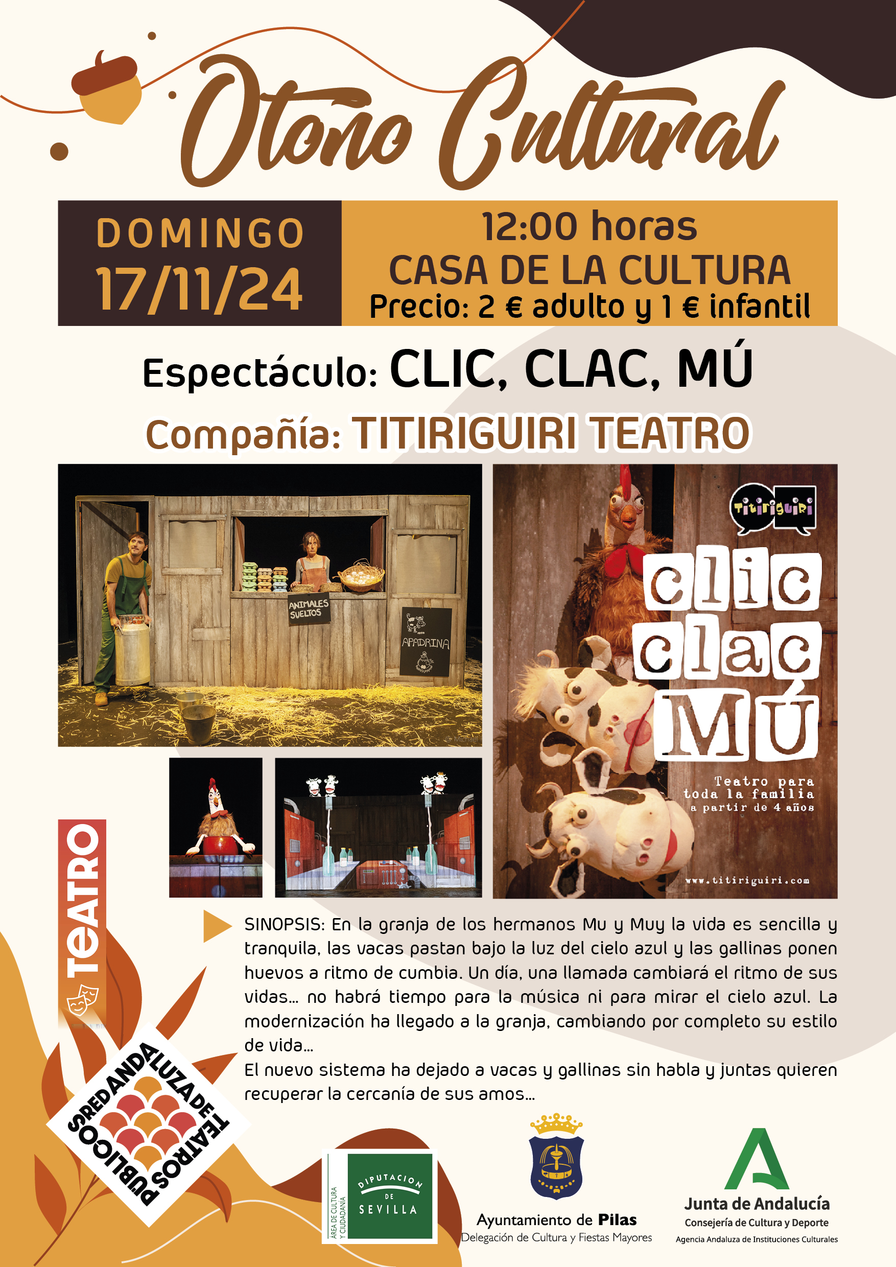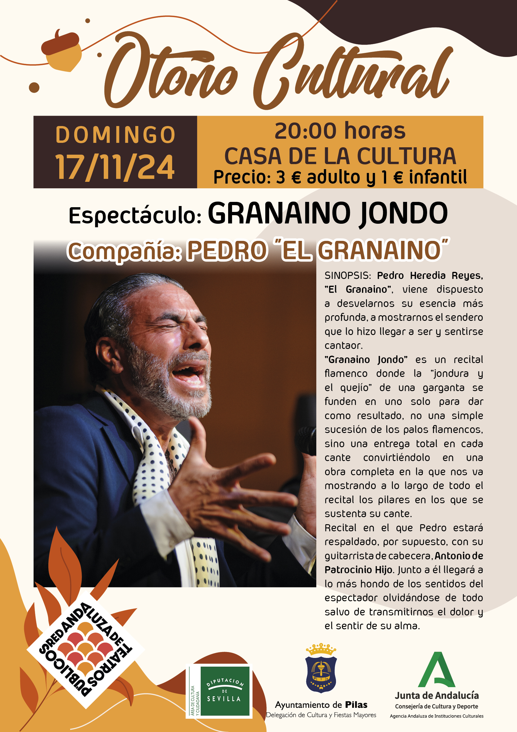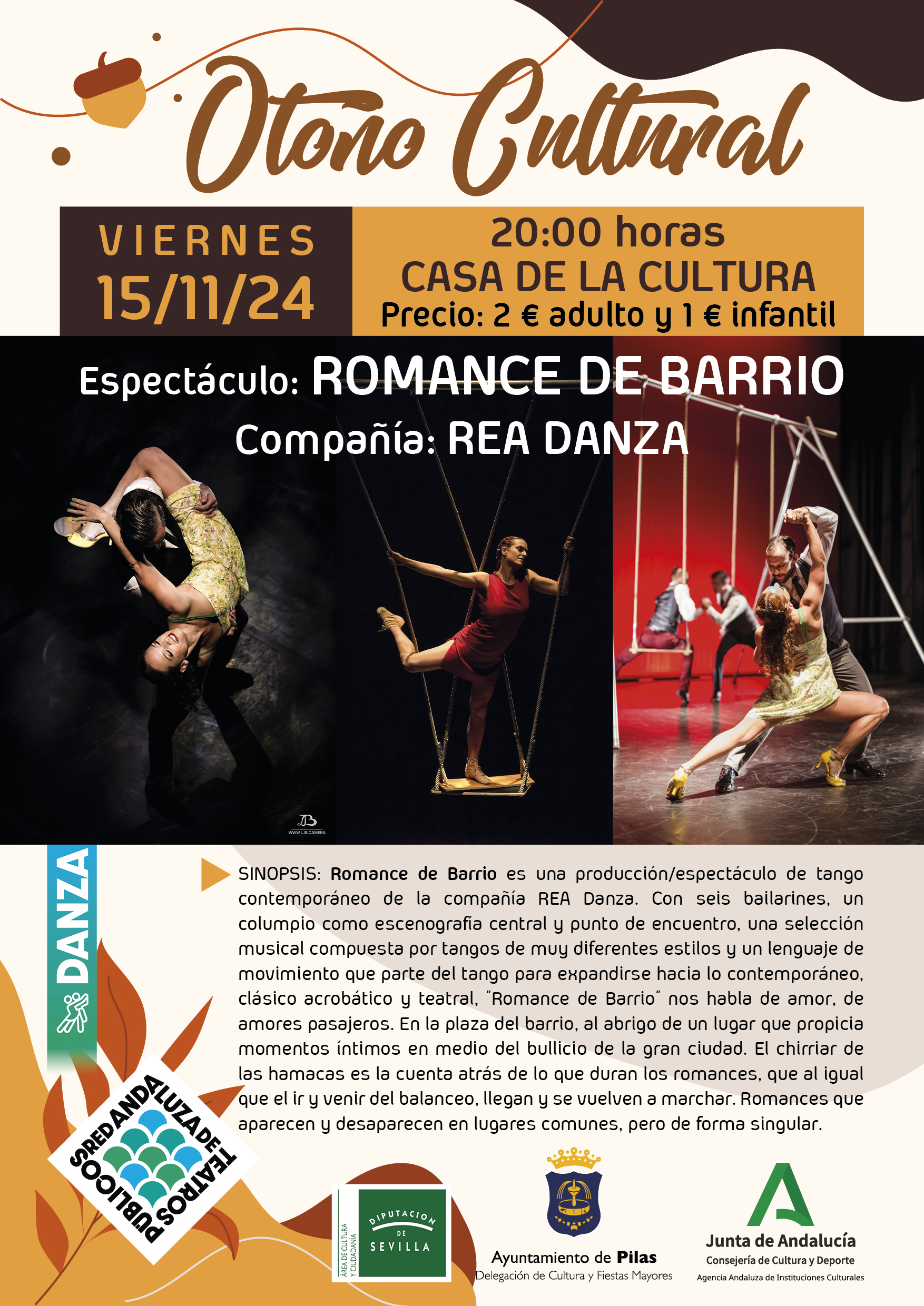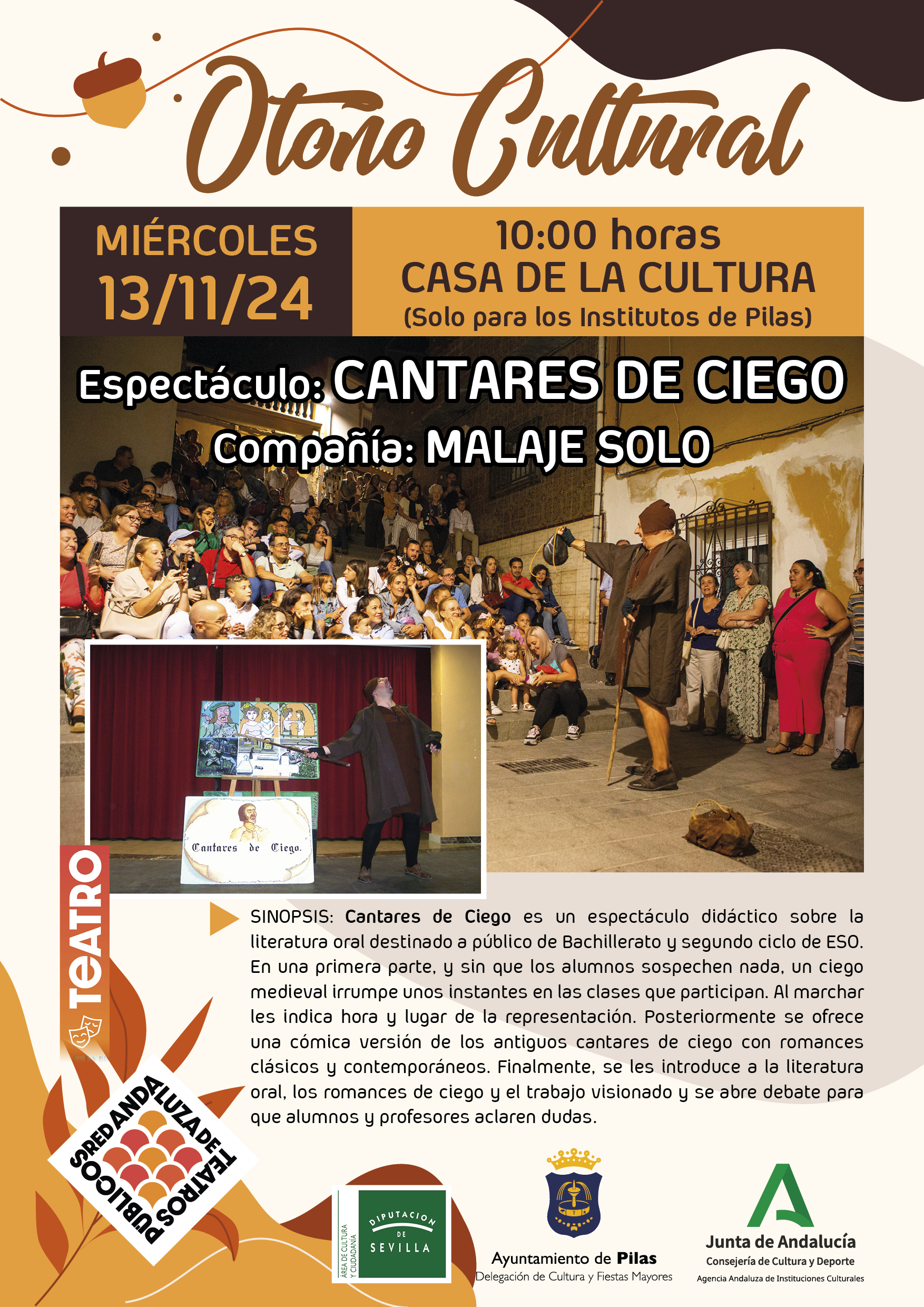 Compartimos la cartelera completa de nuestro Otoño Cultural. Obras teatrales, danza, espectáculos infantiles y flamenco, dos de ellos de carácter didáctico dirigidos al alumnado de secundaria y bachillerato, y los demás para el público en general.