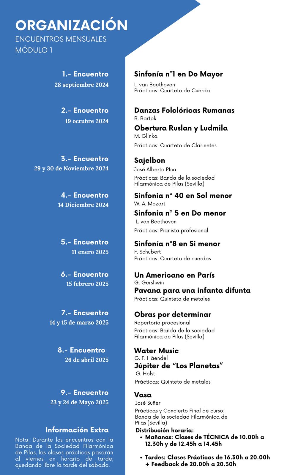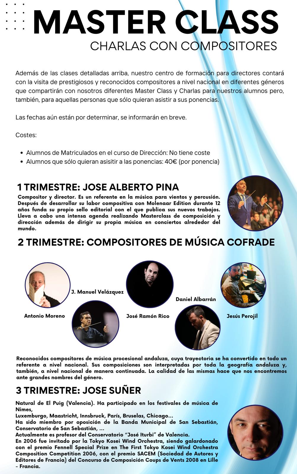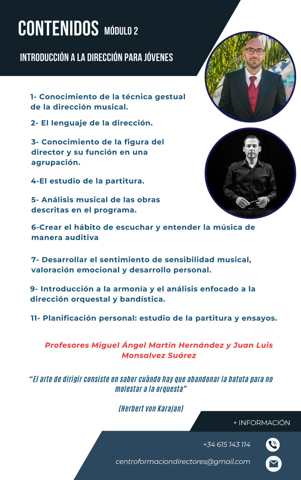 - Módulo 2: iniciación a la dirección de orquesta y banda para jóvenes de entre 16 y 22 años, al mando de Juan Luis Monsalves Suárez y Miguel Ángel Martín Hernández.