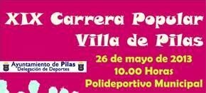 PLAZO DE INSCRIPCIÓN FINALIZADO. La Delegación de Deportes del Ayuntamiento de Pilas organiza la XIX Carrera Popular "Villa de Pilas", a celebrar el 26 de mayo de 2013, pudiendo participar cualquier persona nacida en los años 2007 y anteriores.