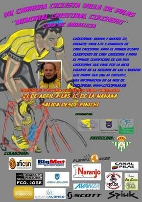 El próximo domingo 21 de abril, a las 10.00 horas, se celebrará una de las carreras más esperadas por todos los aficionados a este deporte en Pilas, enmarcada en la Copa de Andalucía. La salida se realizará desde Pinichi. Este año además, esta actividad deportiva servirá de homenaje póstumo a Honorio Vera, miembro de la Asociación Deportiva Cyclopilas, fallecido recientemente. Información sobre la prueba aquí.