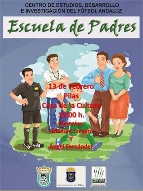 Próximo miércoles 13 de febrero a partir de las 19.00 horas en la Casa de la Cultura. Consiste en un programa formativo del CEDIFA y un proyecto de la Real Federación Andaluza de Fútbol en el que se conciencia a los padres y madres de su función como responsables en la educación deportiva de sus hijos y sobre sus actuaciones en los partidos de fútbol u otros deportes. Entrada gratuita.