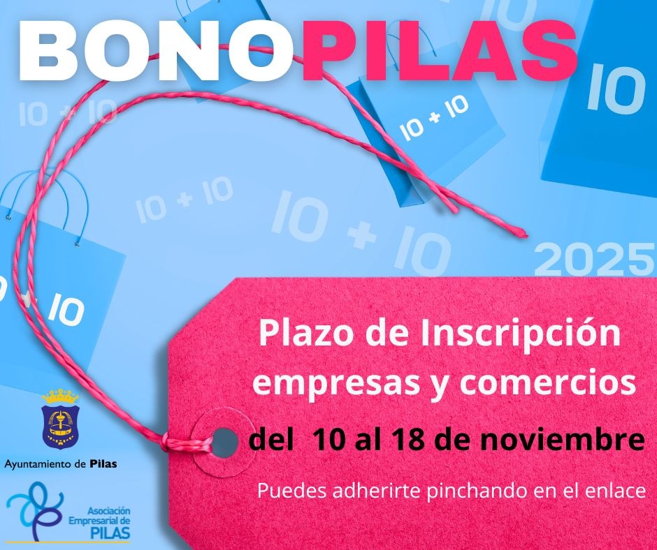 Desde el 10 hasta el 18 de noviembre, ambos inclusive, queda abierto el plazo de inscripción para todas las empresas y comercios que deseen adherirse a esta nueva campaña del BonoPilas 10+10.