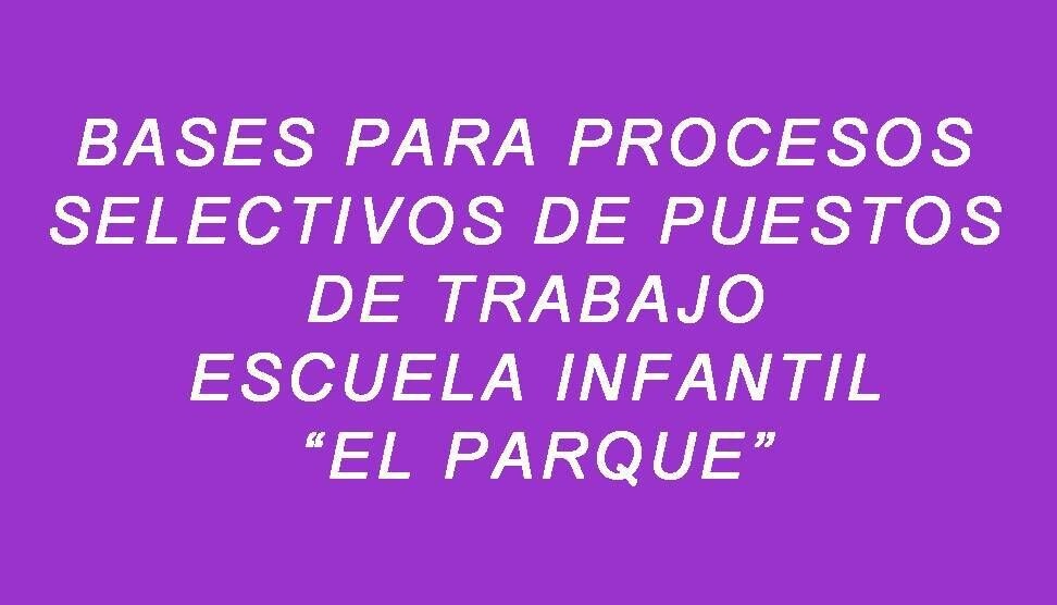 Bases para los procesos selectivos de varios puestos de trabajo de carácter temporal para la Escuela Infantil "El Parque", curso 2013/2014