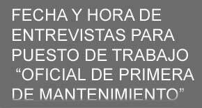 FECHA Y HORA DE ENTREVISTAS PARA PUESTO DE TRABAJO "OFICIAL DE PRIMERA DE MANTENIMIENTO"