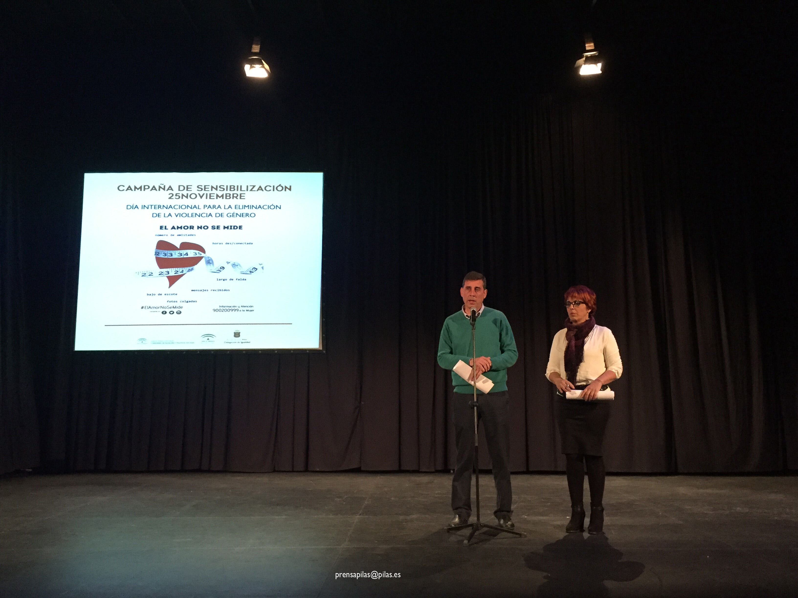 Por la tarde, la Casa de la Cultura acogió a un nutrido grupo de personas que participaron en el acto de rechazo y repulsa contra la violencia de género. El alcalde de Pilas, José Leocadio Ortega, abrió el mismo y quiso comenzarlo con un minuto de silencio en honor a todas las víctimas asesinadas "sobre todo, por aquellas que residían cerca de nuestro entorno", tal y como expresó Ortega. A continuación, el regidor pronunció unas breves palabras de rechazo a "la violencia de género, una de las peores lacras de esta sociedad" y quiso hacer mención a quienes en "corporaciones anteriores trabajaron por la igualdad".