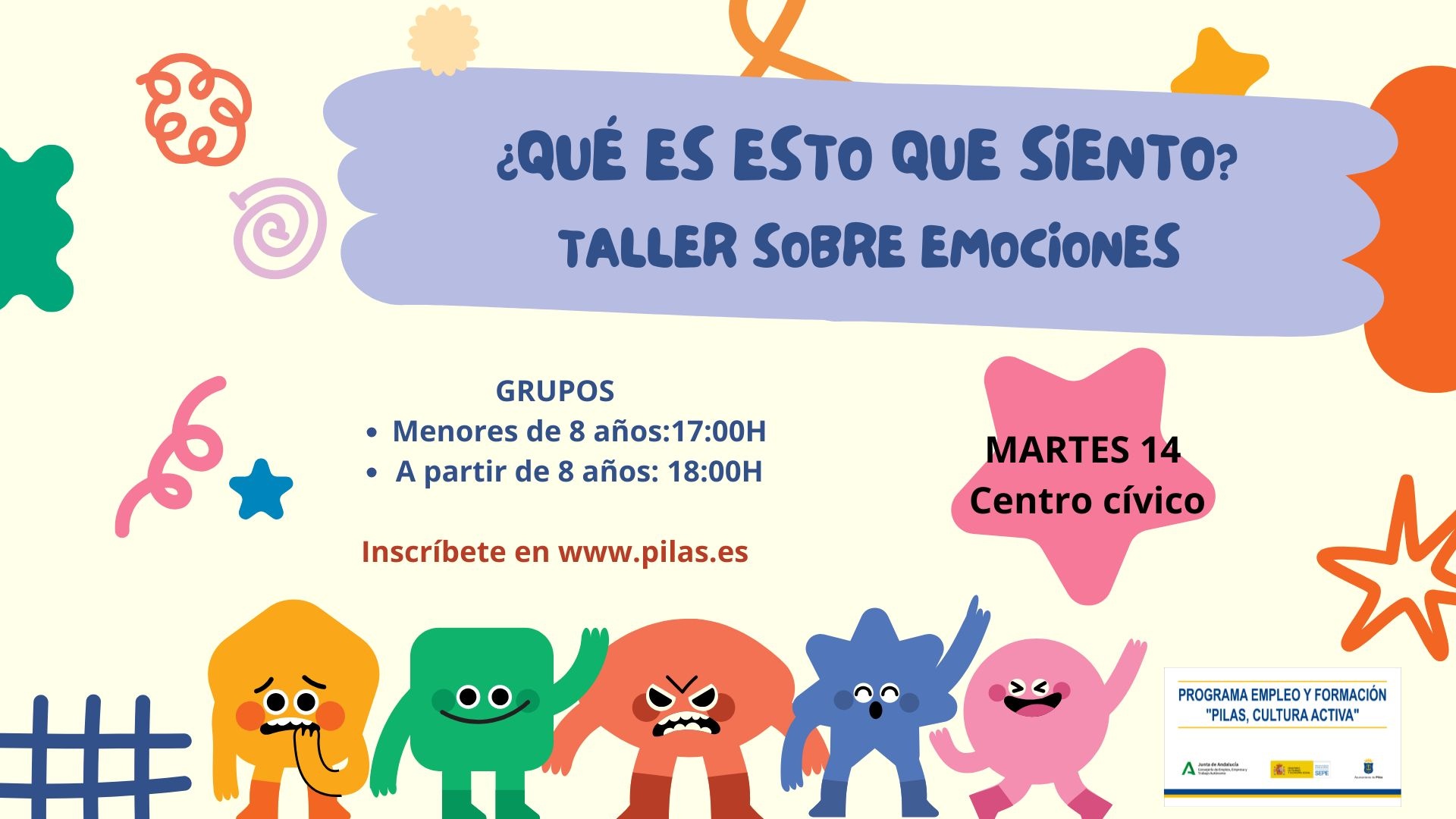 Nuevo taller organizado por la Delegación de Juventud, en esta ocasión sobre el conocimiento y la gestión de las emociones, dirigido a niños y niñas de todas las edades, divididos en dos turnos: menores y mayores de 8 años.