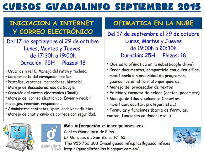 Cursos Guadalinfo para el mes de septiembre