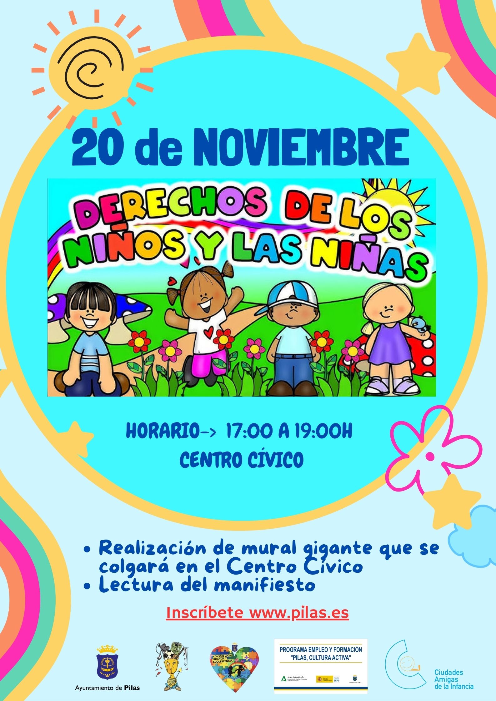 La Delegación de Juventud organiza una serie de actividades el miércoles, 20 de noviembre, para unirse a la celebración del Día Internacional de los Derechos de la Infancia. En esta ocasión, los menores inscritos realizarán un mural gigante que posteriormente se colgará en el Centro Cívico La Plaza, donde se procederá a la lectura de un manifiesto.