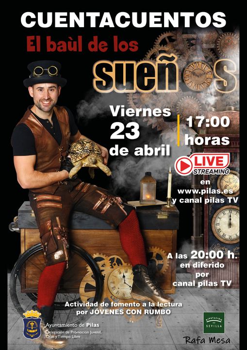 - A las 17.00 horas: Cuentacuentos "El baúl de los sueños" por streaming a través de nuestra web y de Canal Pilas Tv.