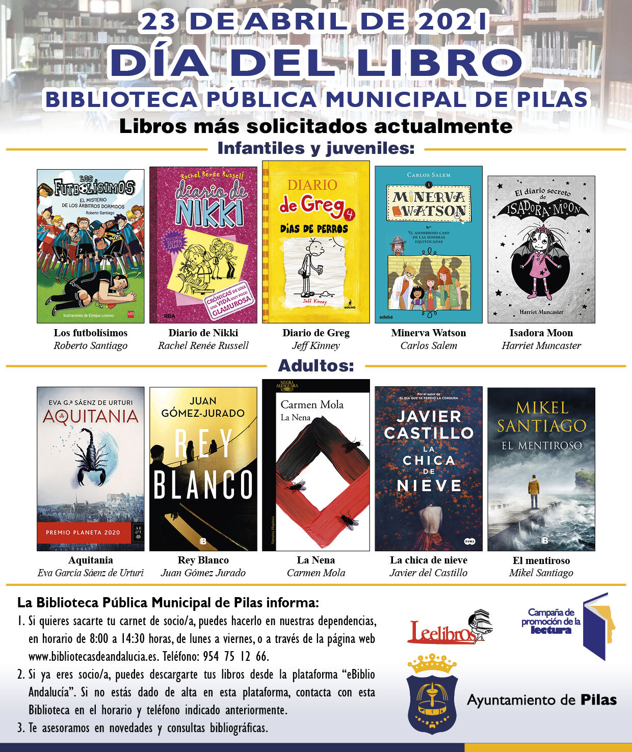 Un libro nos proporciona sabiduría, conocimiento, información, creatividad y puede ser una buena terapia para el ser humano, máxime en la época que estamos viviendo con la problemática de la pandemia. Por lo que desde el Ayuntamiento de Pilas fomentamos la lectura, porque leer enriquece nuestra propia cultura.