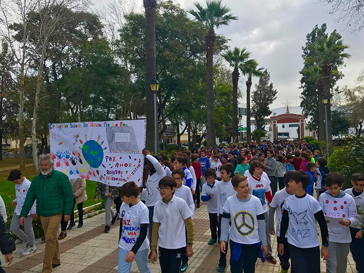 Ataviados muchos con camisetas blancas y diferentes símbolos y pancartas con mensajes de paz, tolerancia, respeto e igualdad, los participantes han realizado un recorrido por diversas calles de Pilas, teniendo como punto de partida la Plaza Mayor, con parada en el Ayuntamiento -donde han colgado varias pancartas- y con el Parque Municipal como escenario final, donde han tenido lugar varias lecturas y manifiestos por la Paz, bailes y una convivencia entre todos los alumnos y alumnas, que han disfrutado de un rato de convivencia y con la práctica de talleres lúdicos y educativos.