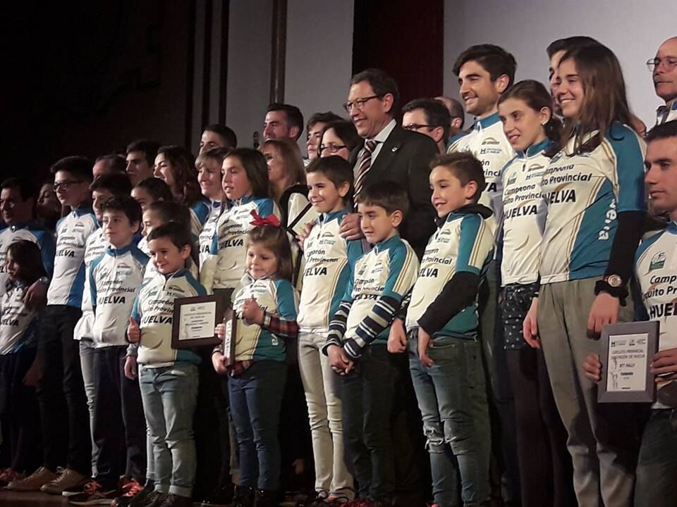 El pasado viernes, un grupo de alumnos de esta escuela recibieron galardones en la Gala del Ciclismo de Huelva, celebrada en el Teatro Juan Cobos Wilkins, en Riotinto. Fueron más de 160 los deportistas y clubes galardonados los protagonistas de esta emotiva Gala del Ciclismo de Huelva, que estuvo presidida por la alcaldesa de Minas de Riotinto, Rosa María Caballero; el presidente de la Federación Andaluza de Ciclismo, Manuel Rodríguez; y el delegado de la FAC en Huelva, Francisco Javier Macías.
