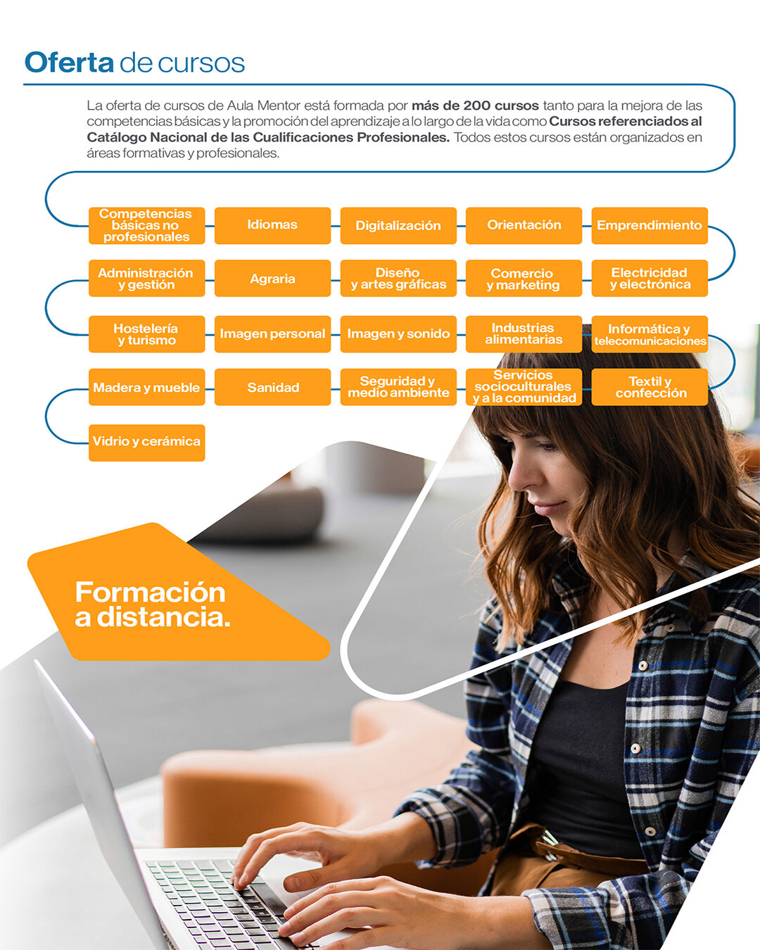 Formación a distancia dirigida a personas adultas mayores de 18 años que deseen reforzar sus posibilidades de empleabilidad con acompañamiento y tutoría telemática personalizada.