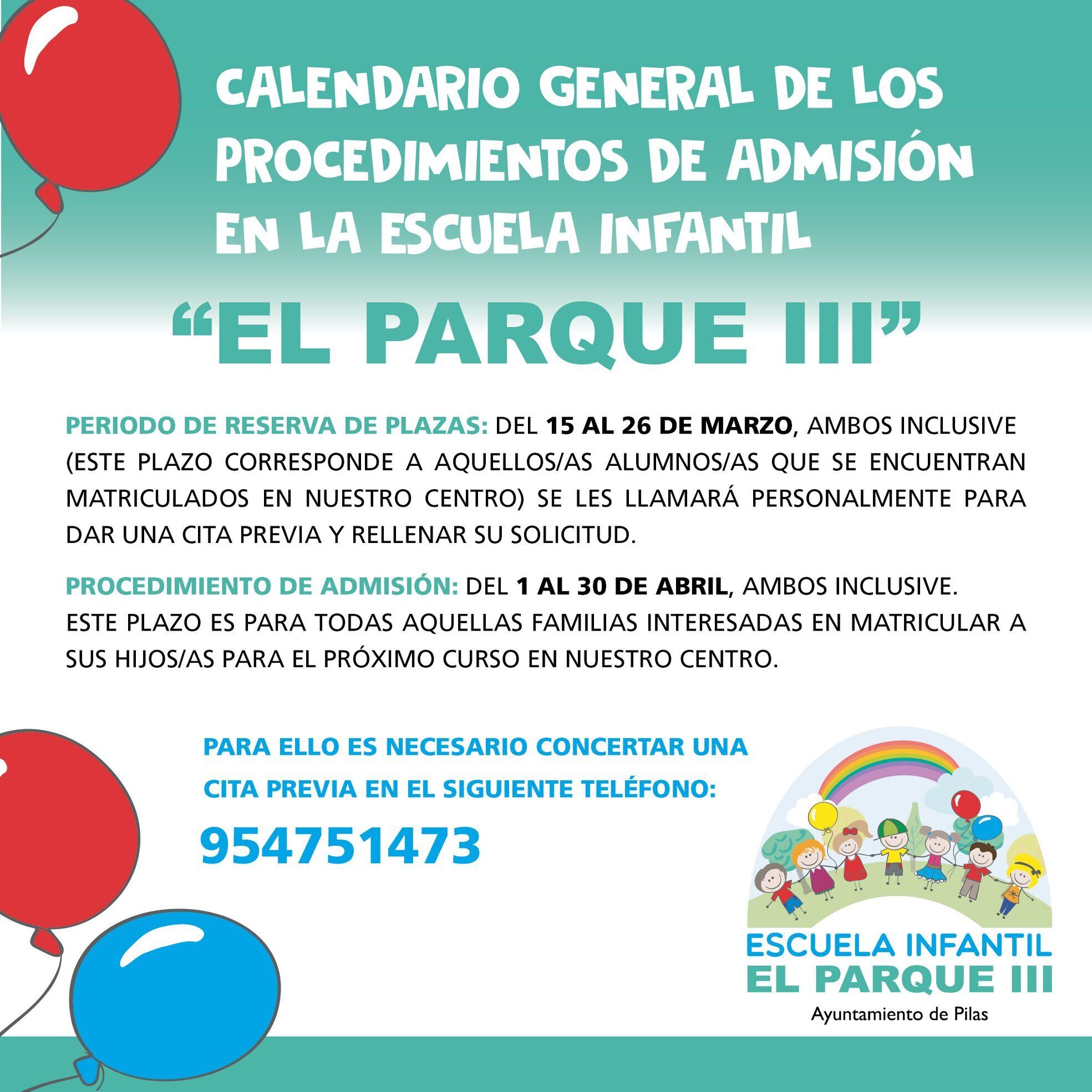 Calendario General de Adminsión en la Escuela Infantil El Parque III