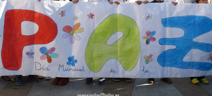 Antes de iniciar el recorrido, un grupo de alumnos de los dos institutos de Secundaria han colocado sendas pancartas en el interior del Consistorio cuyos lemas promueven la paz y la tolerancia. El Ayuntamiento de Pilas ha colaborado con esta iniciativa propuesta por los distintos centros educativos y el propio concejal de Educación, Juan Ignacio Fuentes, ha participado en la colaboración de las mismas.