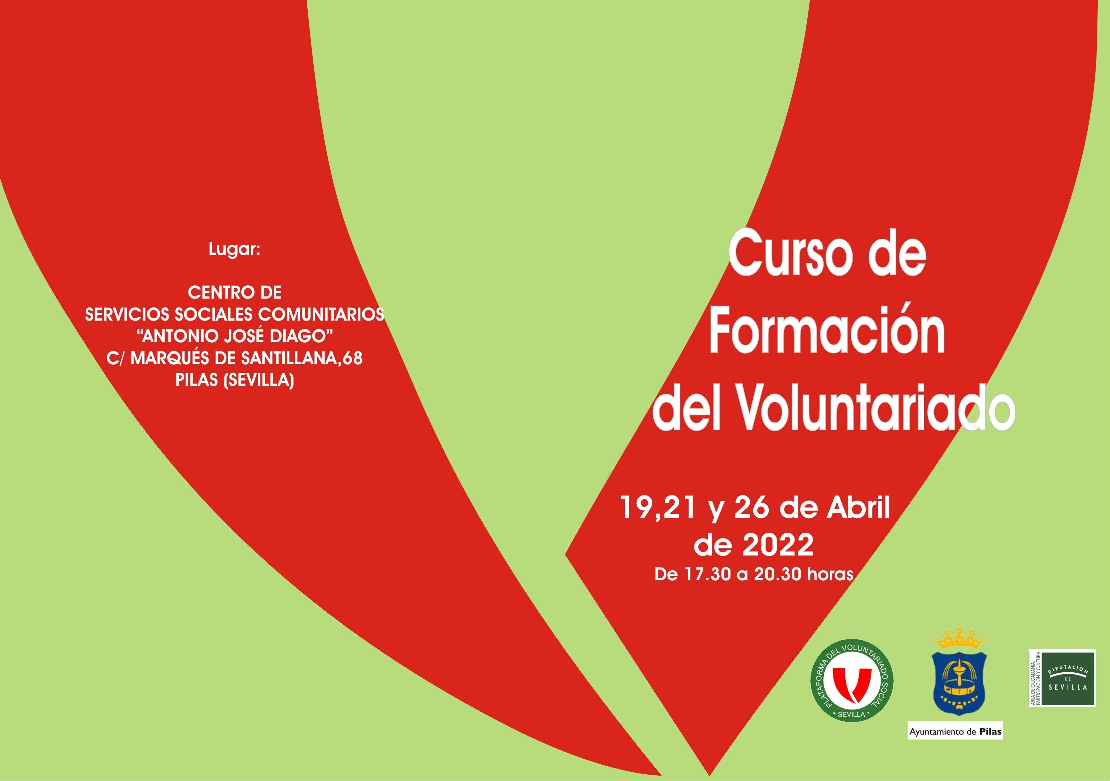 El Ayuntamiento de Pilas y la Plataforma del Voluntariado Social de Sevilla, en colaboración con la Diputación de Sevilla, organizan estas jornadas formativas los días 19, 21 y 26 de abril, de 17.30 a 20.30 horas, en el Centro de Servicios Sociales Comunitarios (calle Marqués de Santillana, 68).