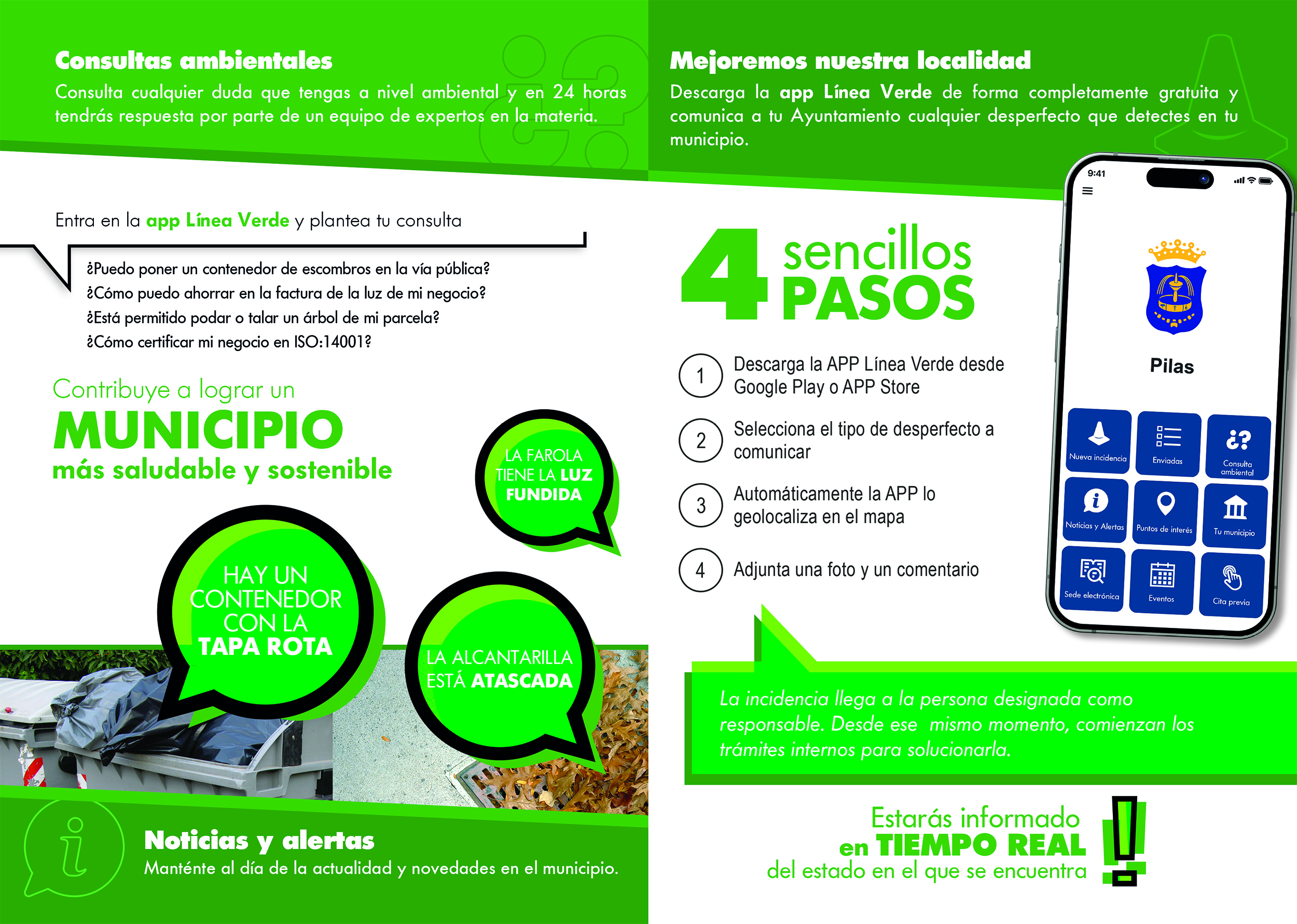 El Ayuntamiento de Pilas implanta un nuevo servicio de comunicación de incidencias a través de la app Línea Verde