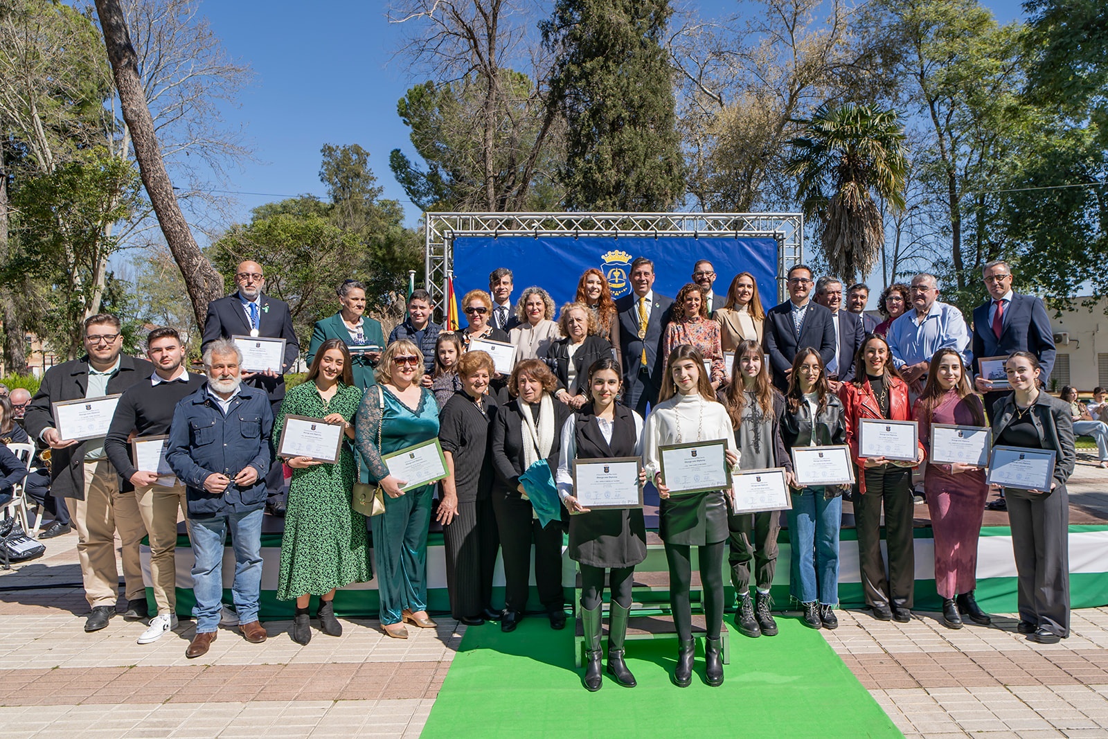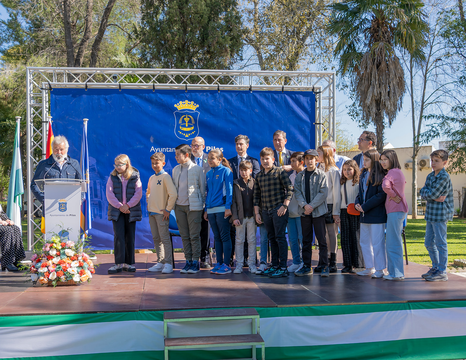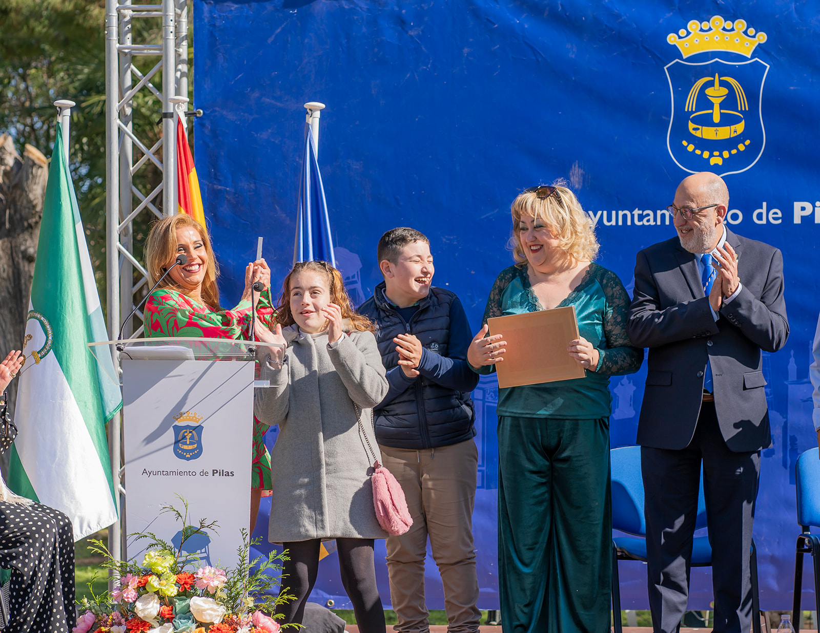 Con el afán de continuar acercando la cultura a nuestros barrios, en este 2024, el emplazamiento elegido para celebrar el día de nuestra comunidad autónoma fue el Parque Municipal Alcalde José Suárez Cuesta, pulmón verde de nuestra localiad y uno de nuestros enclaves más importantes. De la mano de Mª Paz Valladares, cpresentadora del acto una nueva edición, fueron subiendo al escenario las distintas personas premiadas por categoría para recoger sus galardones de manos del alcalde, José Leocadio Ortega, del concejal de Cultura, Antonio Barragán, del concejal de Desarrollo, Juan Ignacio Fuentes, del concejal de Adelante Pilas, Juan Antonio Garrido, y del concejal del PSOE de Pilas, José Monsalves, que fueron los siguientes: