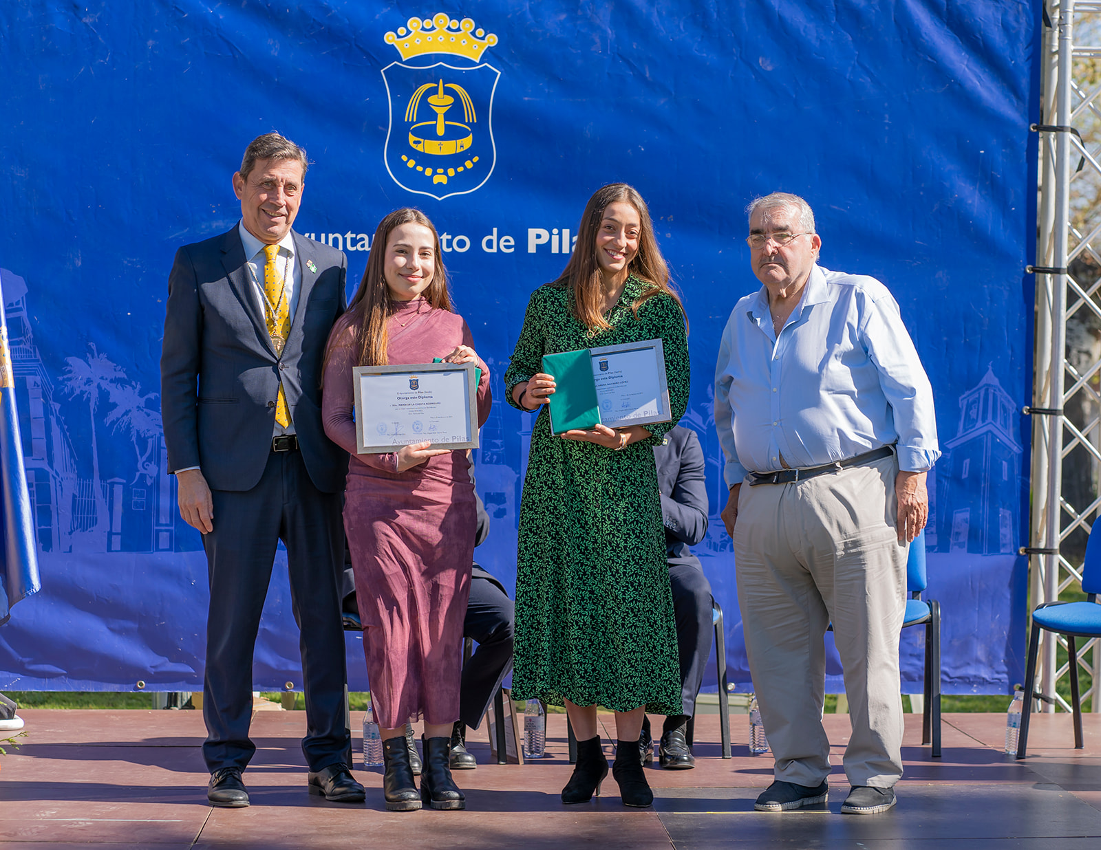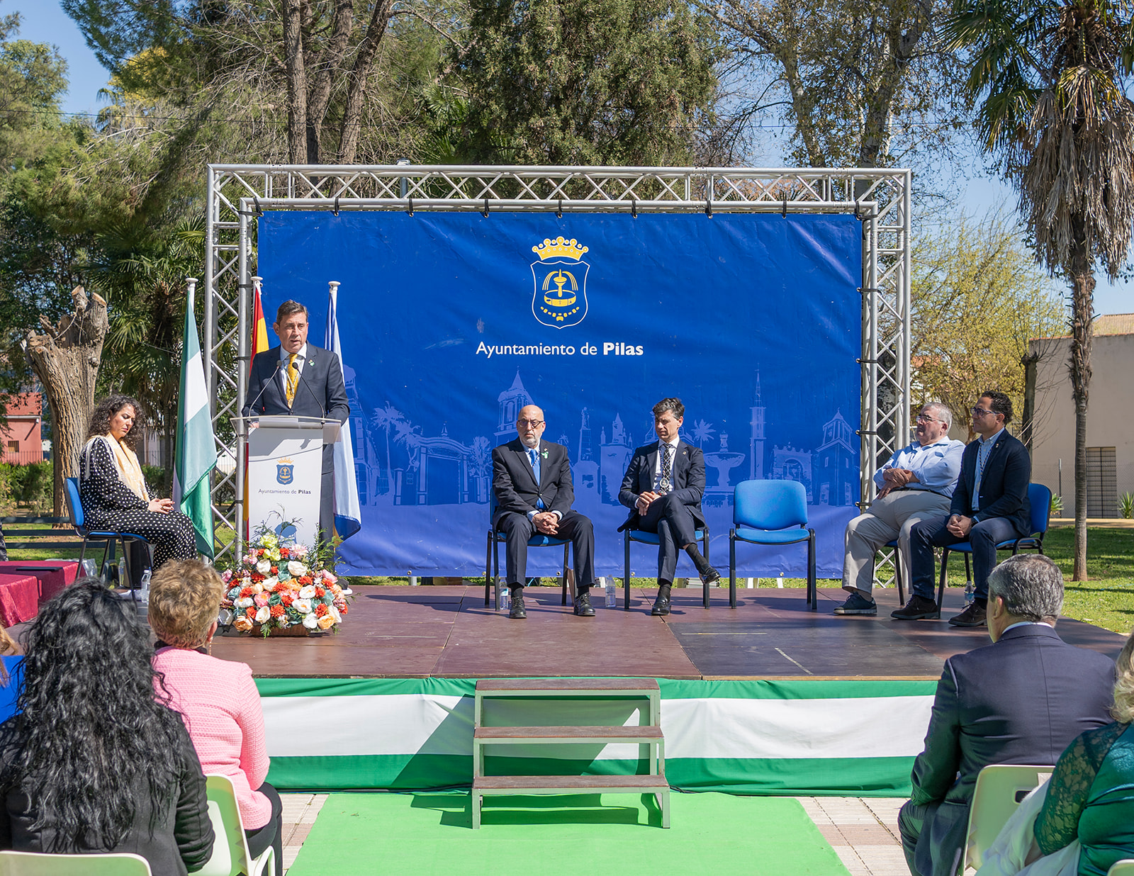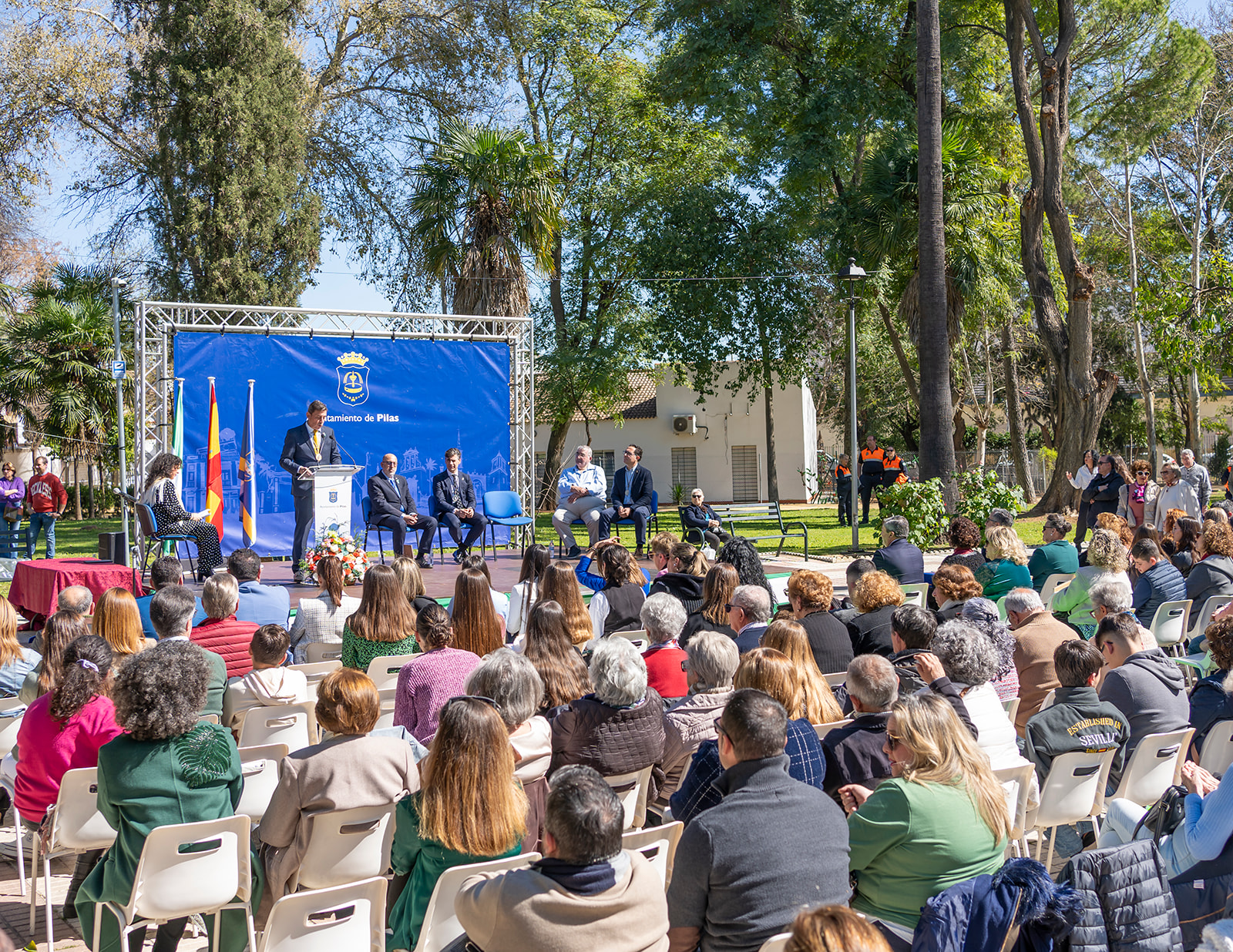 Con el afán de continuar acercando la cultura a nuestros barrios, en este 2024, el emplazamiento elegido para celebrar el día de nuestra comunidad autónoma fue el Parque Municipal Alcalde José Suárez Cuesta, pulmón verde de nuestra localiad y uno de nuestros enclaves más importantes. De la mano de Mª Paz Valladares, cpresentadora del acto una nueva edición, fueron subiendo al escenario las distintas personas premiadas por categoría para recoger sus galardones de manos del alcalde, José Leocadio Ortega, del concejal de Cultura, Antonio Barragán, del concejal de Desarrollo, Juan Ignacio Fuentes, del concejal de Adelante Pilas, Juan Antonio Garrido, y del concejal del PSOE de Pilas, José Monsalves, que fueron los siguientes: