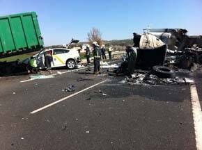accidente se vieron implicados dos camiones -uno de ellos de transporte de mercancías peligrosas