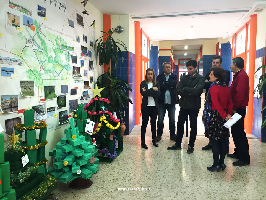 Ayer por la mañana, el alcalde de Pilas, José Leocadio Ortega y el delegado de Educación, Juan Ignacio Fuentes, visitaron los centros escolares y comprobaron de primera mano el ingenio de los alumnos y el trabajo de muchas madres de las AMPAS para dar forma a las innumerables botellas y envases que días antes estaban postradas en cajas.
