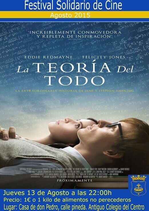 Pasad una estupenda velada con la película que se proyectará esta noche en nuestro Festival Solidario de Cine de Verano, La teoría del todo , ganadora de un Oscar al mejor actor protagonista, que interpreta al conocido científico Stephen Hawking.