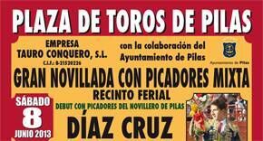 A beneficio del Ateneo Cultural Pileño, será el debut con picadores del novillero de Pilas Díaz Cruz y contará con la participación de otro pileño, Carlos Cuesta. Sábado 8 de junio a las 18.30 de la tarde en el Recinto Ferial.