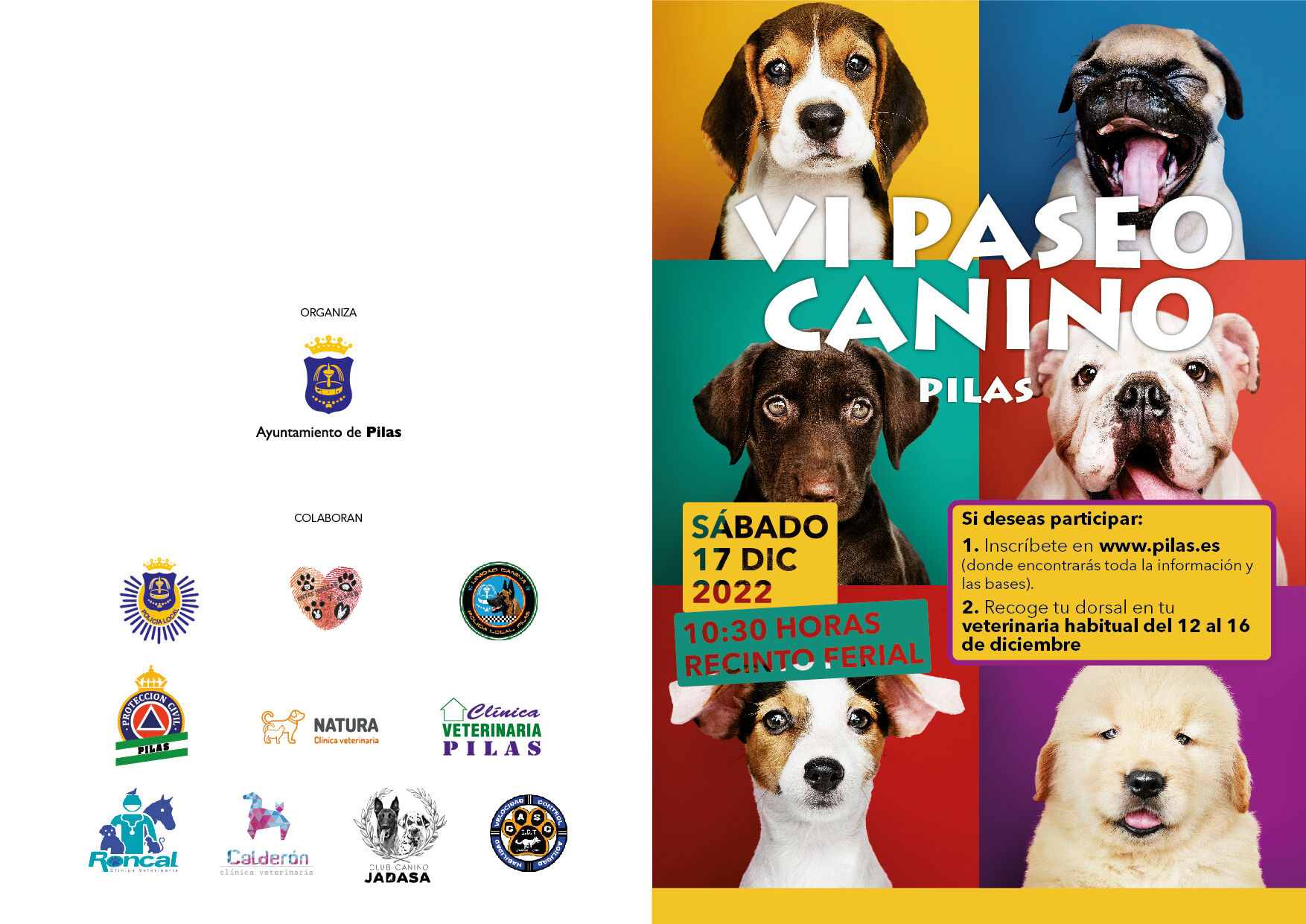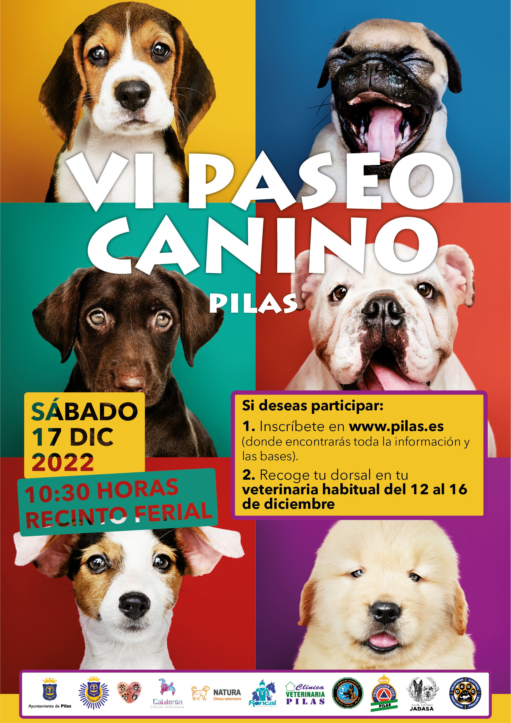 Las Delegaciones de Bienestar Animal, Medio Ambiente y Promoción Juvenil, Ocio y Tiempo Libre del Excmo. Ayuntamiento de Pilas se unen nuevamente para organizar la “VI Concentración & Paseo Canino de Pilas”. Este evento se celebrará el próximo sábado, 17 de diciembre de 2023 en el Recinto Ferial de nuestra localidad, coincidiendo por vez primera con el Campeonato de Andalucía I.D.T y Agildog.