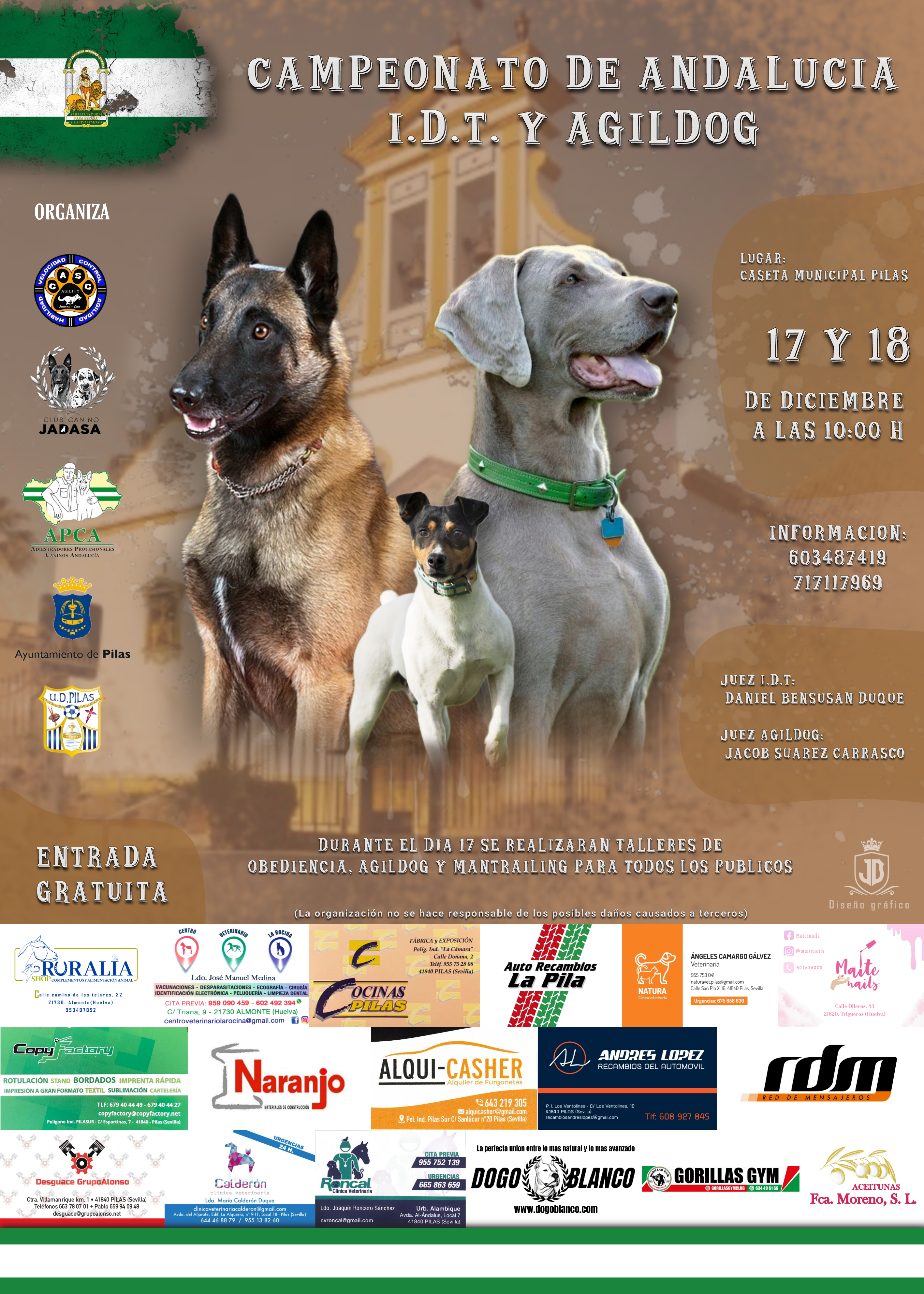 Inscripción al VI Paseo Canino de Pilas e información sobre el Campeonato de Andalucía I.D.T y Agildog.