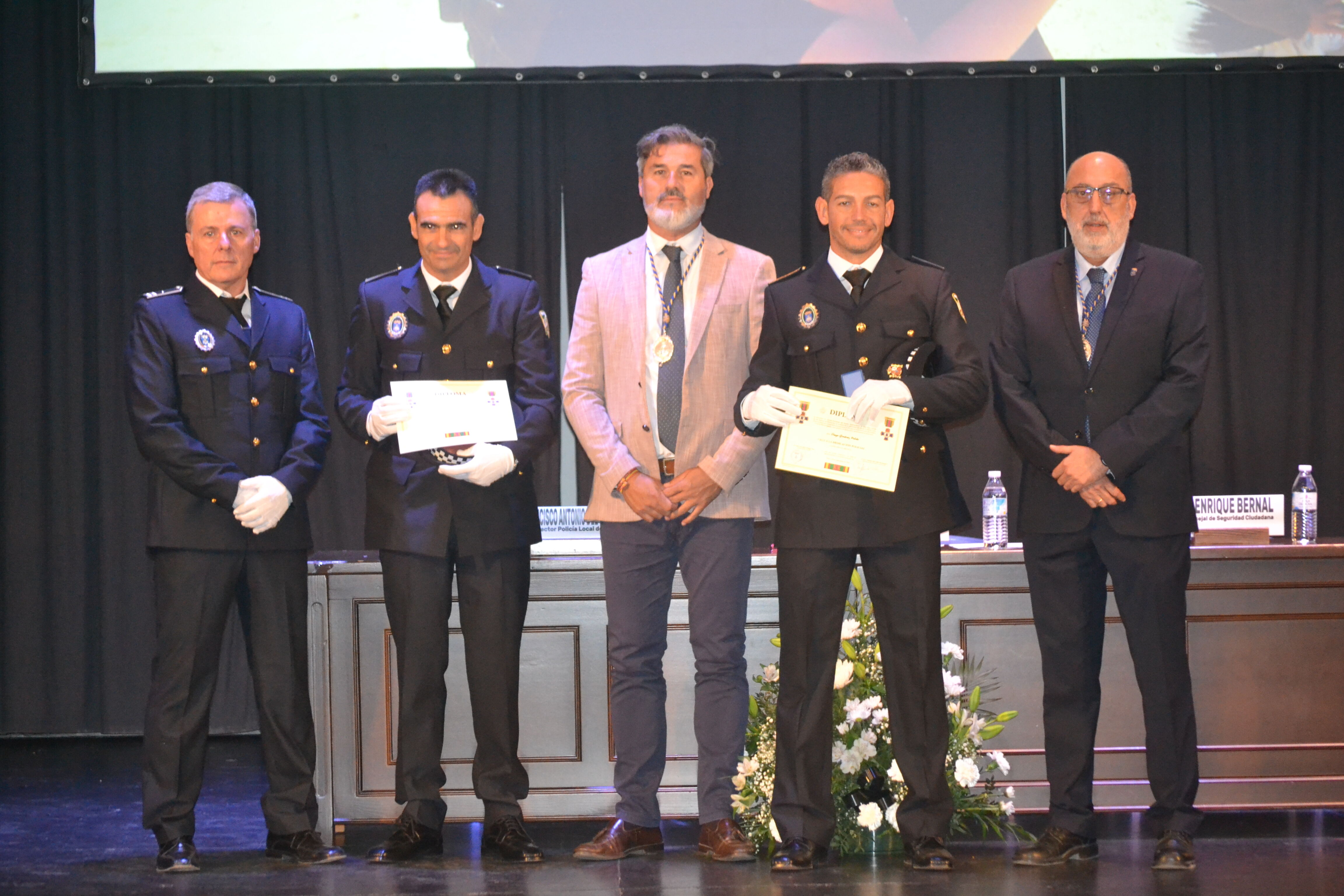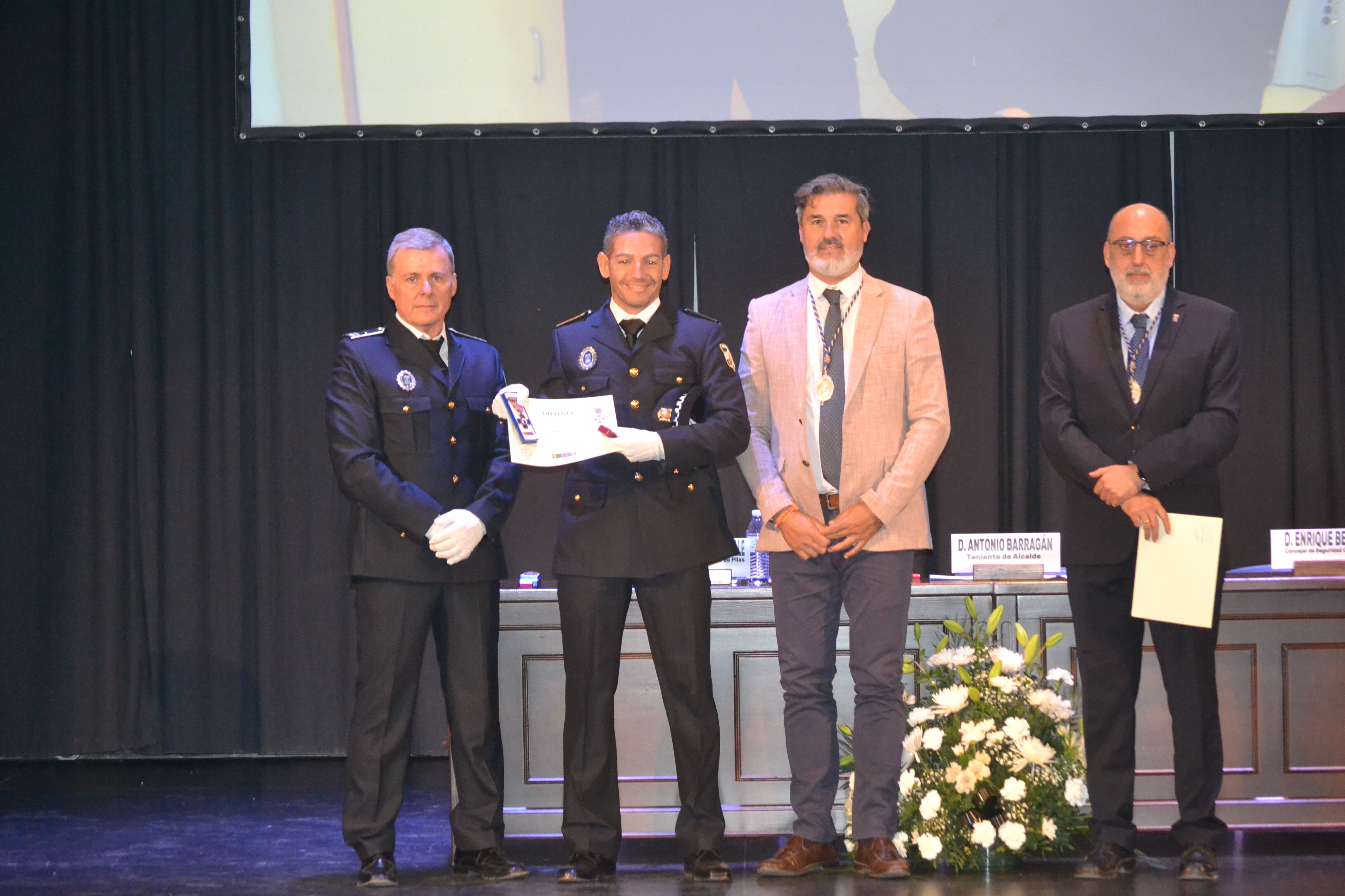 En primer lugar, se les concedió la Cruz de Plata a la Dedicación Policial, por 30 años de servicio público y esfuerzo, al subinspector Francisco Antonio del Valle Hernández, y a los agentes Francisco Antonio López Ventura, Damián Curiel Vázquez, José Sánchez Irizo y Juan Jesús Ruiz Garrido. Al mismo modo, recibieron también la misma insignia los agentes Francisco Antonio Rodríguez Quintero y Diego Jiménez Pulido por sus 20 años de oficio.