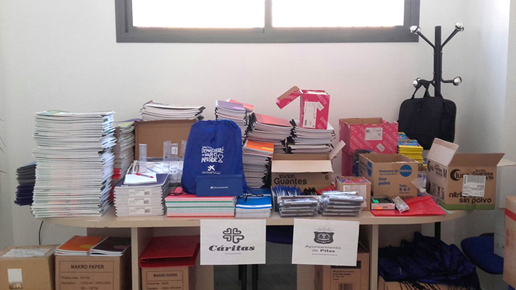 básicas de material escolar y libros de texto de las familias pileñas en riesgo de exclusión social