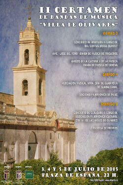 La Sociedad Filarmónica de Pilas será una de las bandas participantes este fin de semana en la segunda edición del Certamen de Bandas "Villa de Olivares" que organiza el Ayuntamiento de esta localidad para fomentar e impulsar la cultura musical. La actuación de la banda pileña será el sábado 4 de julio a las 22:00 horas en la Plaza de España, un entorno monumental declarado Conjunto Histórico-Artístico.