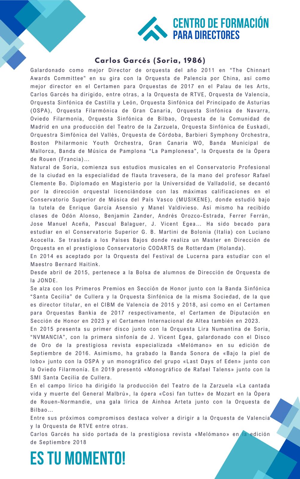 Presentamos este interesante proyecto que se iniciará en nuestro municipio de cara al curso 2024/2025 y que contará con el reconocido profesor y director Carlos Garcés Fuentelsaz, uno de los máximos exponentes en el mundo de la dirección a nivel europeo, para la impartición de las clases teóricas y prácticas.